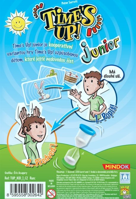 Time's Up! je celosvětově úspěšná legendární hra, která by neměla chybět na žádné party - už pro i pro nečtenáře! Time´s Up! JUNIOR je kooperativní variantou hry Time´s Up! Je přizpůsobená dětem, které ještě nedovedou číst. Hra obsahuje: přesýpací hodiny, 220 karet, česká a slovenská pravidla hry.Vlastnosti