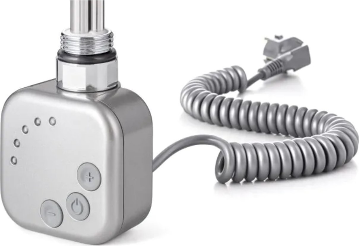 Výjimečný design pro Vaši koupelnu nabízí elektrická tyč se skrytým připojením BURGH1. Ojedinělé je spojení el. kabelu přímo na konstrukci tyče, které je elegantně zakryté rozetou až ke zdi. Díky skrytému kabelu el. topná tyč BURGH1 nenarušuje celkový design místnosti. Nedoporučujeme použít elektrickou tyč BURGH1 do horizontálních radiátorů.