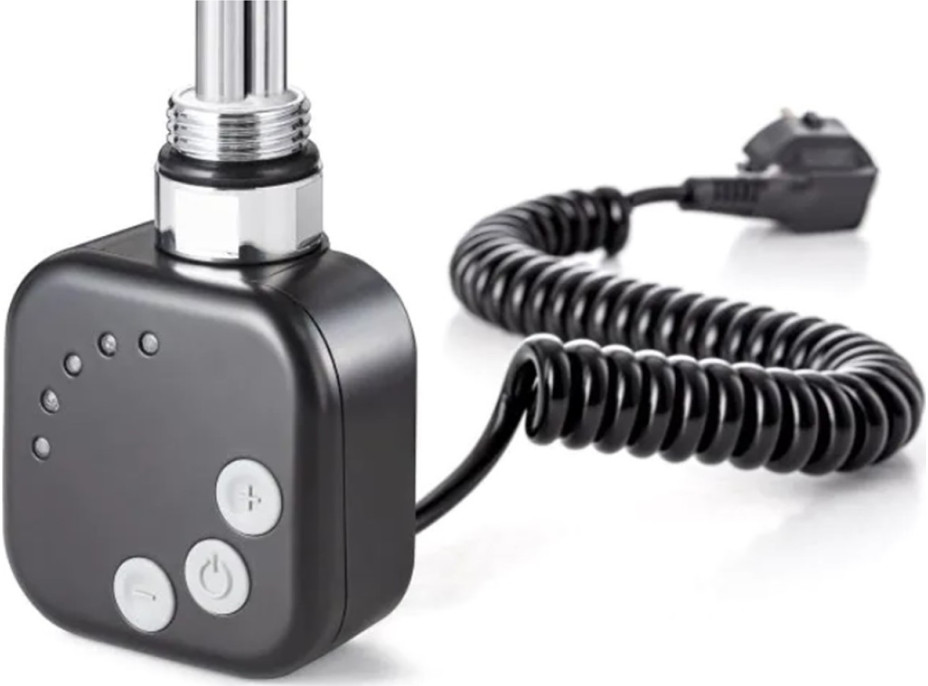 Výjimečný design pro Vaši koupelnu nabízí elektrická tyč se skrytým připojením BURGH1. Ojedinělé je spojení el. kabelu přímo na konstrukci tyče, které je elegantně zakryté rozetou až ke zdi. Díky skrytému kabelu el. topná tyč BURGH1 nenarušuje celkový design místnosti. Nedoporučujeme použít elektrickou tyč BURGH1 do horizontálních radiátorů.