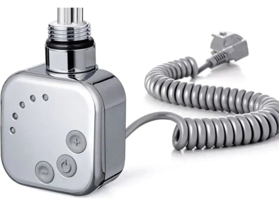 Výjimečný design pro Vaši koupelnu nabízí elektrická tyč se skrytým připojením BURGH1. Ojedinělé je spojení el. kabelu přímo na konstrukci tyče, které je elegantně zakryté rozetou až ke zdi. Díky skrytému kabelu el. topná tyč BURGH1 nenarušuje celkový design místnosti. Nedoporučujeme použít elektrickou tyč BURGH1 do horizontálních radiátorů.