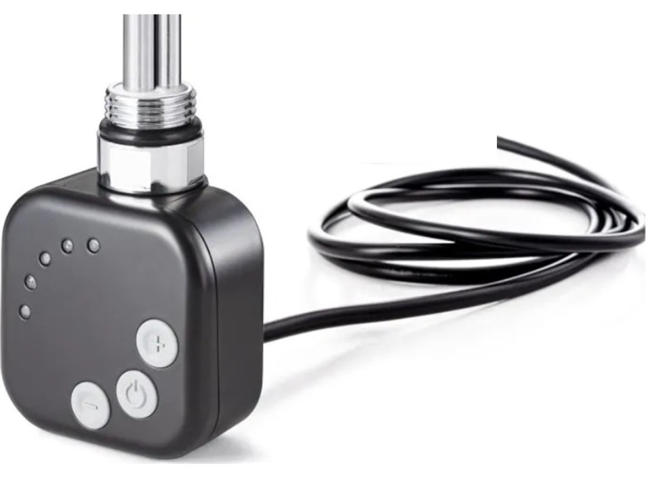 Výjimečný design pro Vaši koupelnu nabízí elektrická tyč se skrytým připojením BURGH1. Ojedinělé je spojení el. kabelu přímo na konstrukci tyče, které je elegantně zakryté rozetou až ke zdi. Díky skrytému kabelu el. topná tyč BURGH1 nenarušuje celkový design místnosti. Nedoporučujeme použít elektrickou tyč BURGH1 do horizontálních radiátorů.