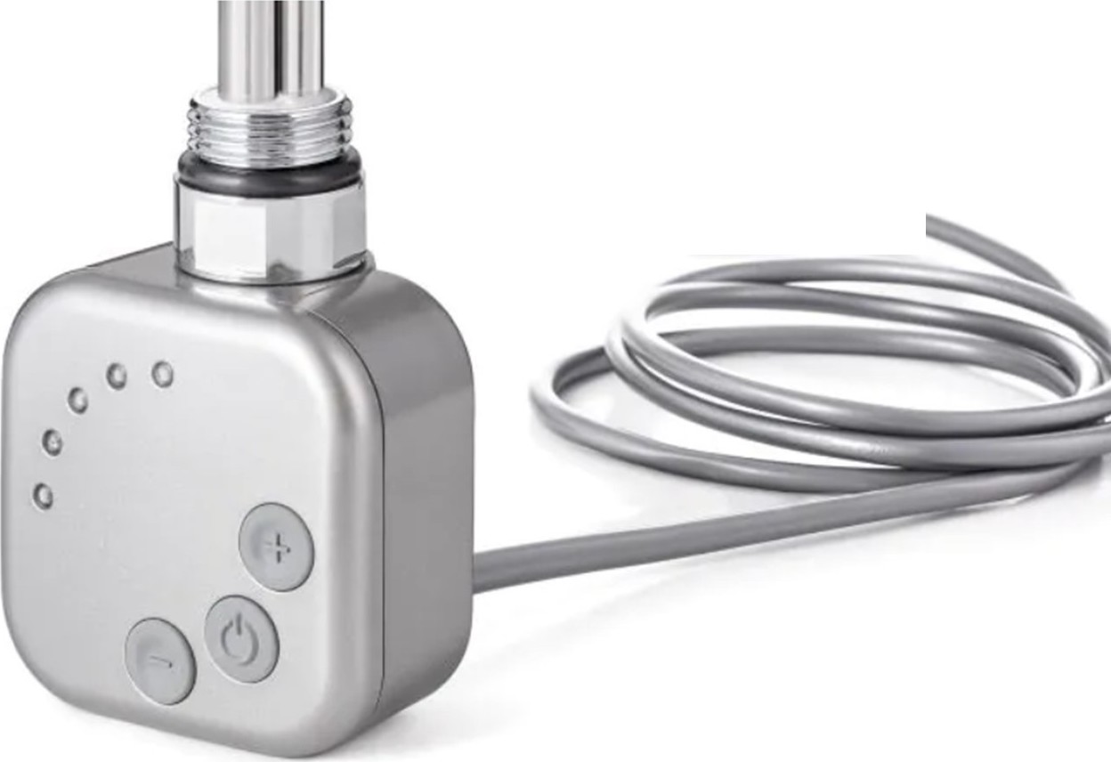 Výjimečný design pro Vaši koupelnu nabízí elektrická tyč se skrytým připojením BURGH1. Ojedinělé je spojení el. kabelu přímo na konstrukci tyče, které je elegantně zakryté rozetou až ke zdi. Díky skrytému kabelu el. topná tyč BURGH1 nenarušuje celkový design místnosti. Nedoporučujeme použít elektrickou tyč BURGH1 do horizontálních radiátorů.