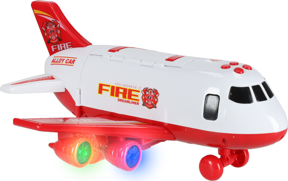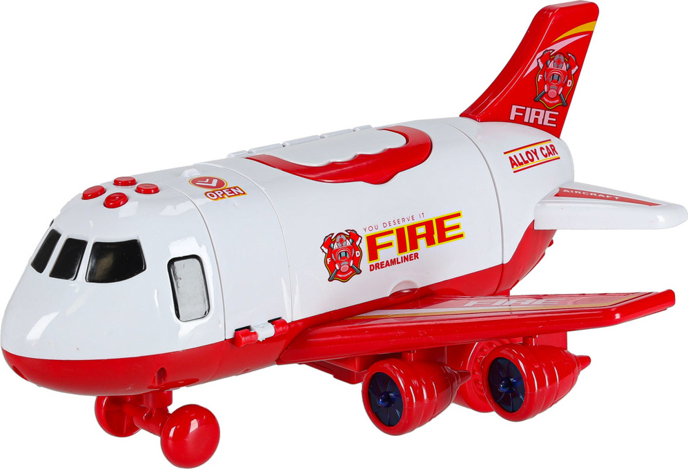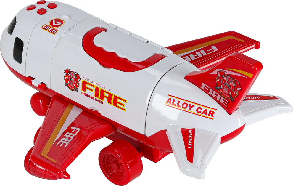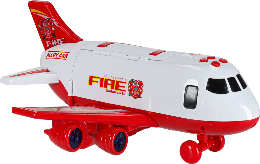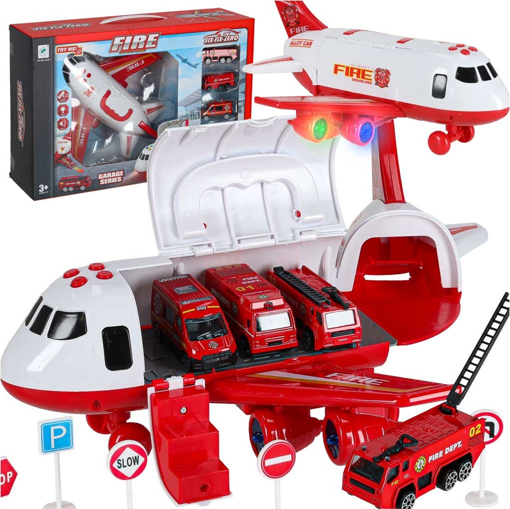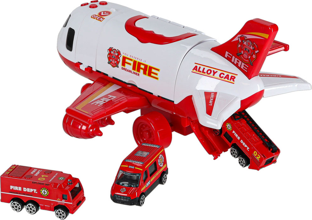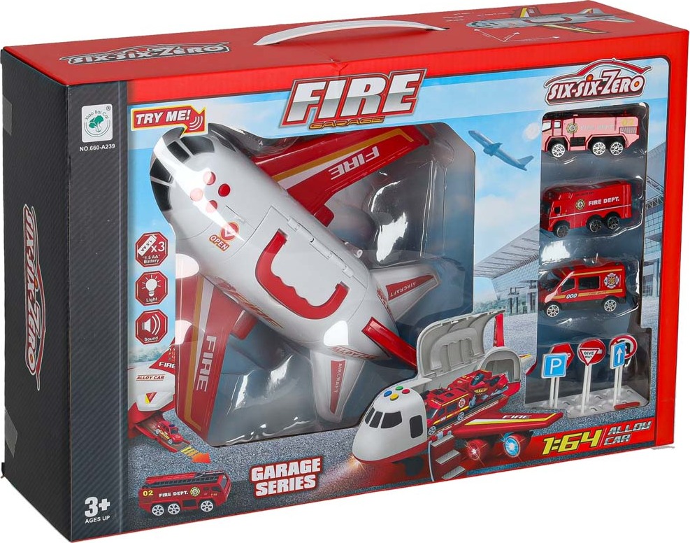 Oheň? Nehoda? Tyto úkoly mohou zvládnout odvážní hasiči s těžkou technikou. Na místo činu dorazí... letecky! Velké letadlo, které dokáže přepravit přiložená vozidla a cedule. Stejně jako skutečný transportér těžké techniky má letadlo na ocase spouštěcí rampu, která umožňuje vjezd vozidel. Lze ji také použít k shazování vody na hořící oblast! Letadlo se také otevírá z boku, aby se s hračkami uvnitř lépe manévrovalo. Ale nezapomínejme na statečné hasiče! Ti jsou vybaveni tradičním systémem schůdků. Hra na hasiče je skvělou příležitostí, jak se dozvědět o nebezpečích založení požáru, ale i o číslech tísňových volání a o vhodné reakci na mimořádné události. Vaše dítě se hrou dozví o různých typech uniformovaných složek a jejich povinnostech.