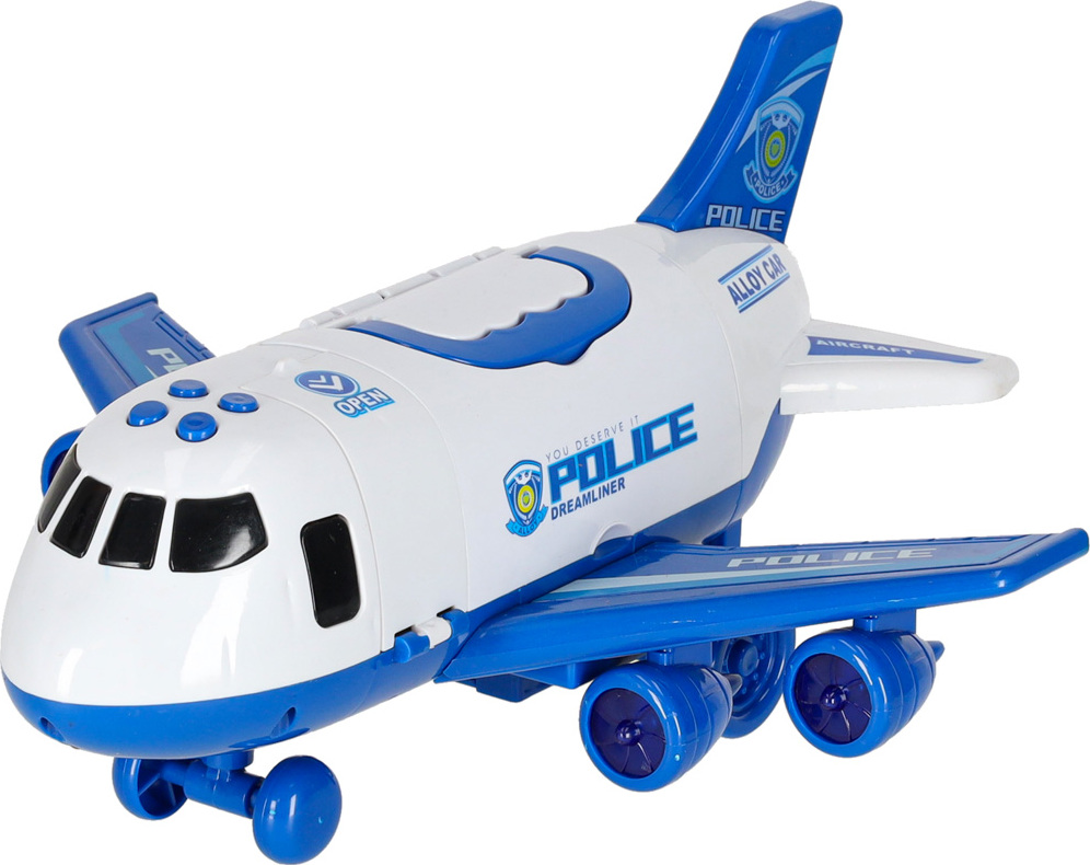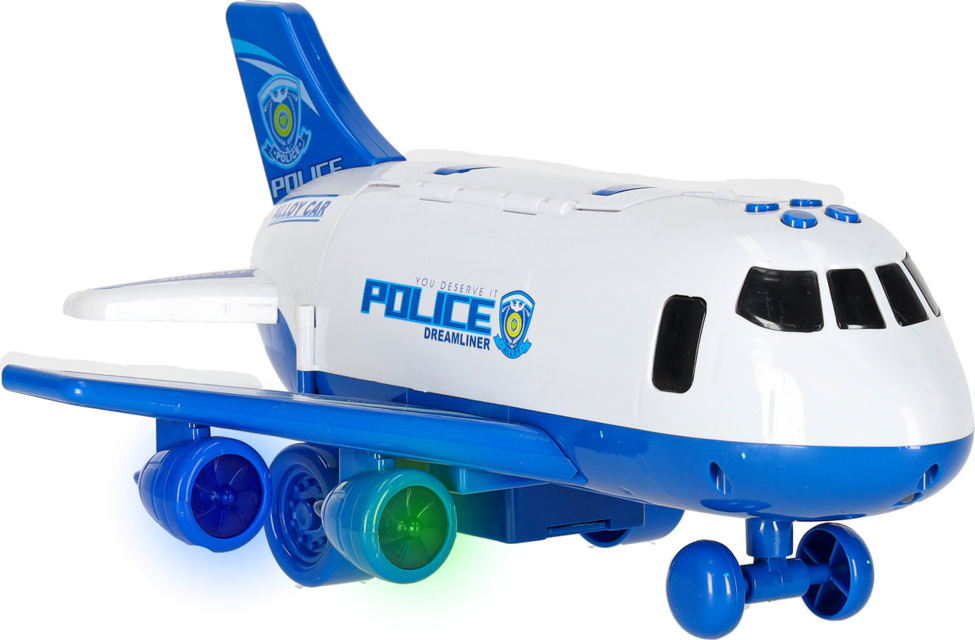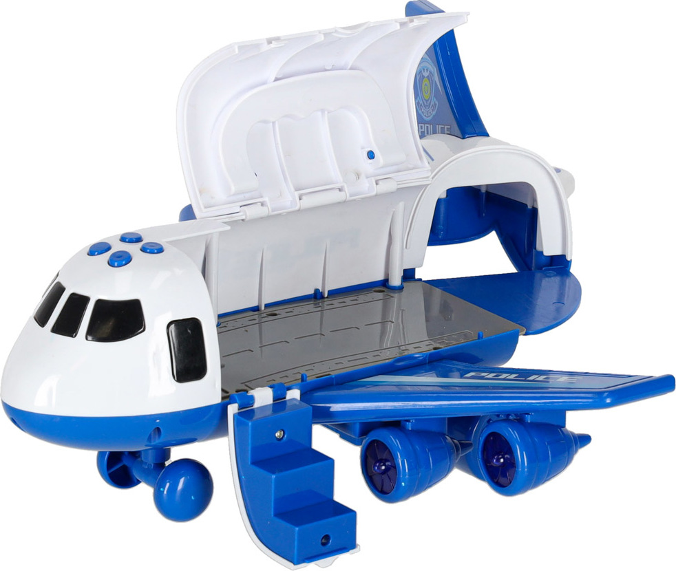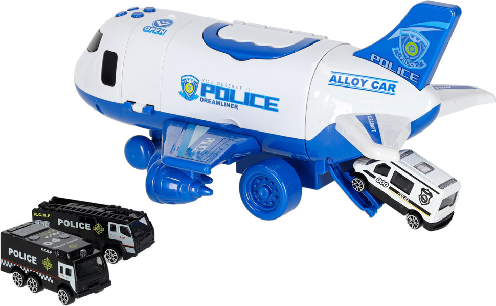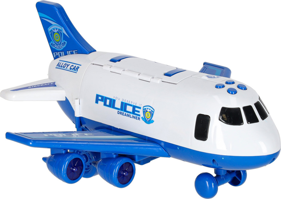 Vydejte se do oblak s celou policejní posádkou! Velké letadlo, které mohou převážet přiložená auta a postavy na palubě. Velké letadlo, které uveze přiložená vozidla a cedule. Policejní razie? Přepravte všechny policisty na místo činu! Jako skutečný transportér těžké techniky má letadlo na ocase spouštěcí rampu, která umožňuje vstup vozidlům. Otevírá se také z boku pro snazší manévrování s hračkami uvnitř. Ale nezapomínejme na policisty! Budou mít tradiční schůdkový vstup.