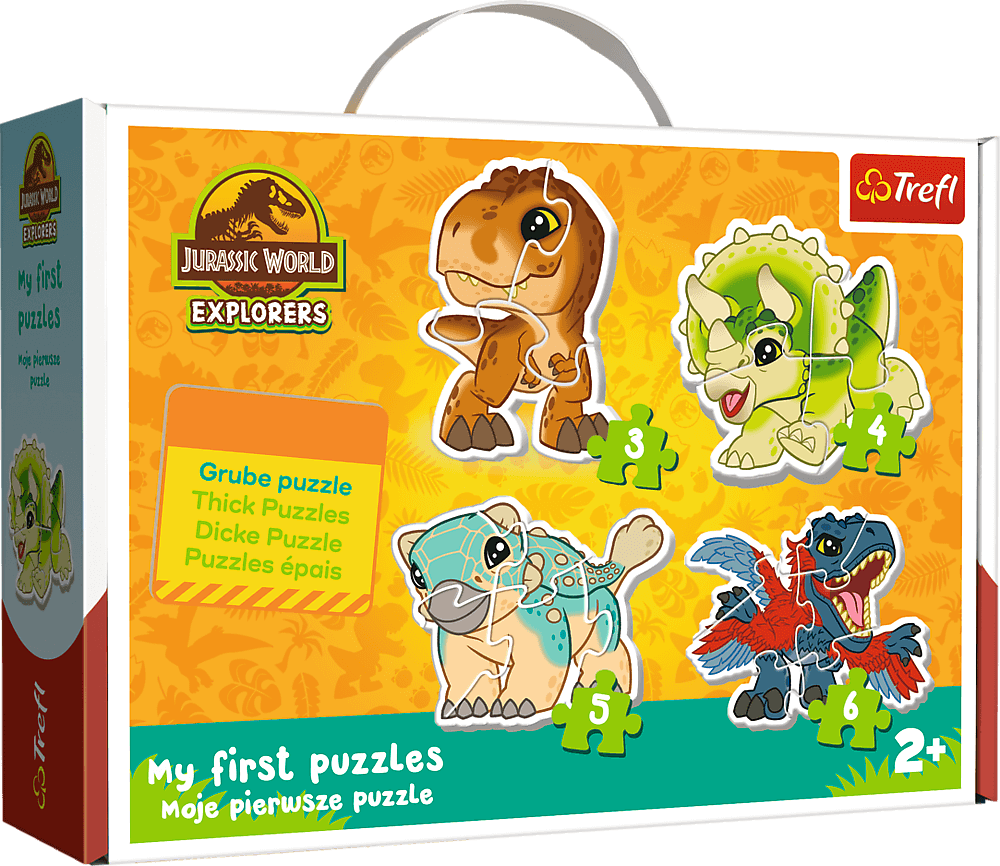 Čtyři velké puzzle pro nejmenší děti s dinosaury. Velké dílky s tloušťkou 4mm jsou pro malé dětské ručičky snadno uchopitelné a první skládání rozvíjí manuální zručnost, koordinaci i prostorovou orientaci.