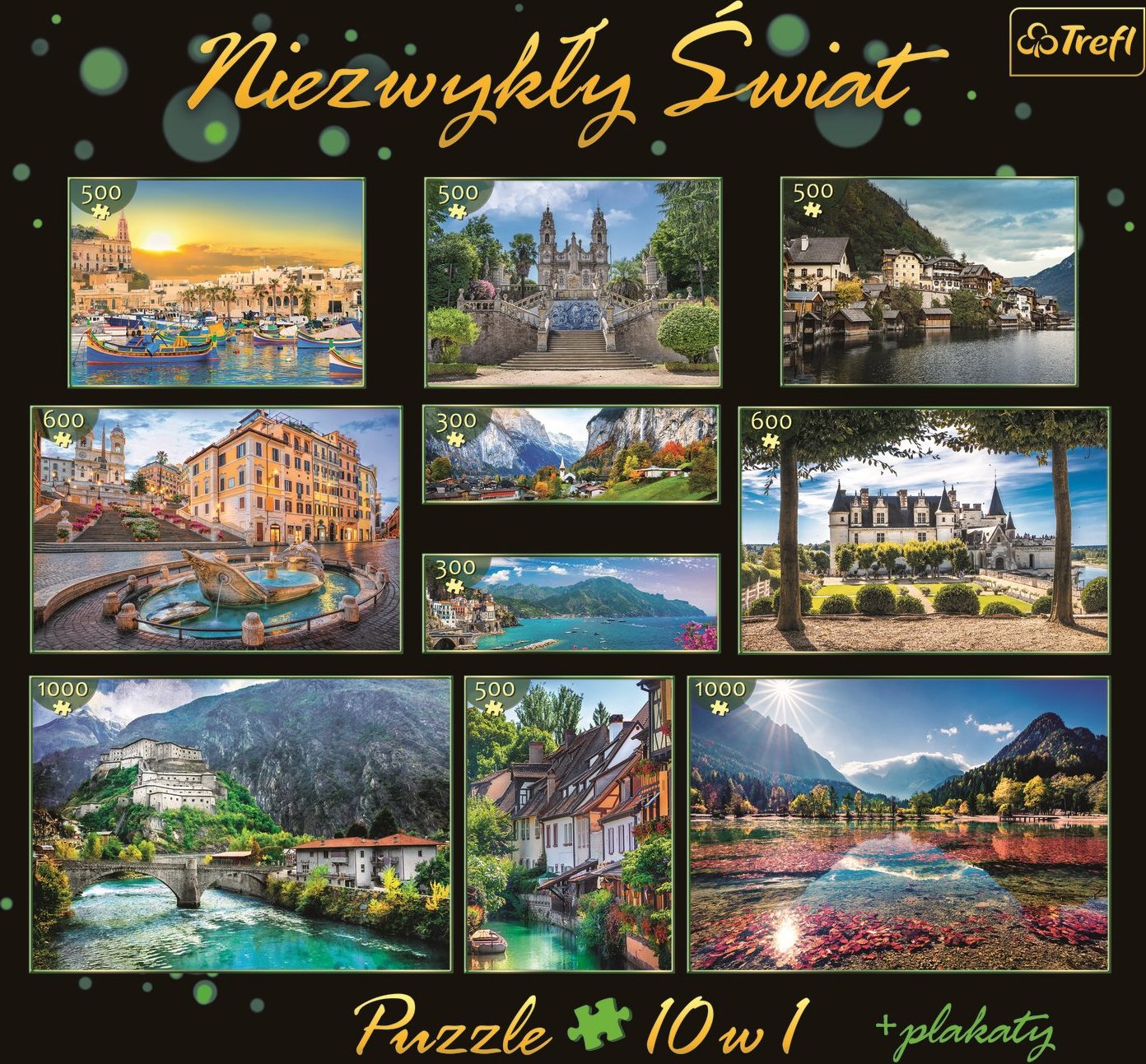 Sada obsahuje 10 puzzle různé velikosti od 300 do 1000 dílků.
