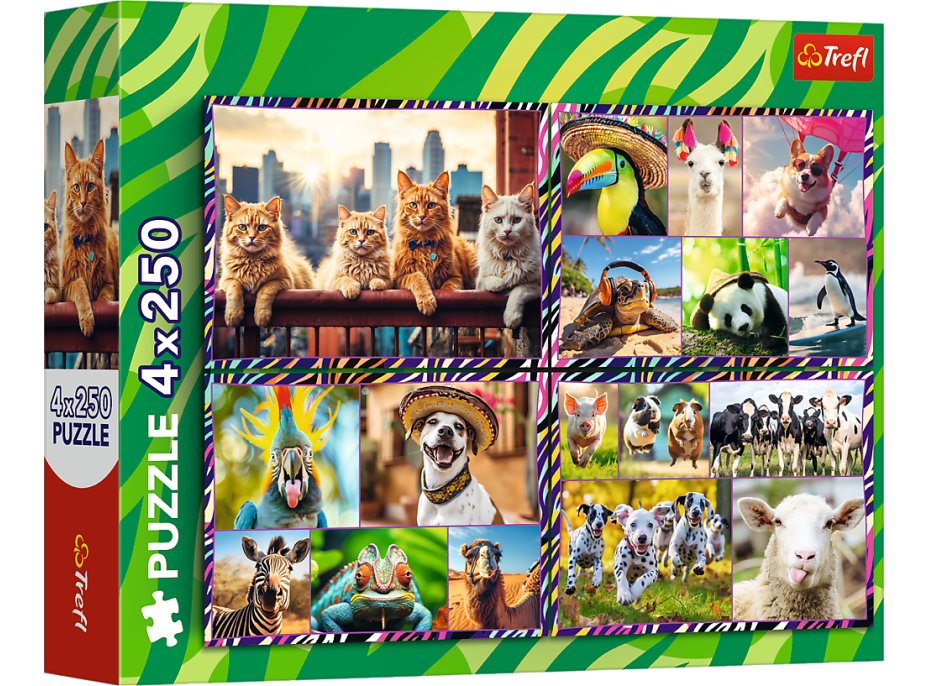 TREFL Puzzle Zábavná zvířata 4x250 dílků