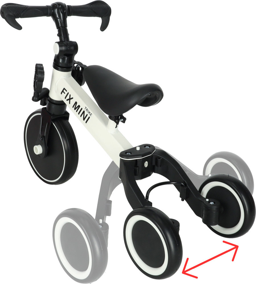 Na samém konci bude mít vaše ratolest nejtěžší úkol - můžete sklopit zadní kola tak, aby byla blízko u sebe. Vaše dítě tak bude muset udržovat rovnováhu a získá skvělou lekci před jízdou na skutečném dvoukolovém kole!