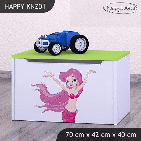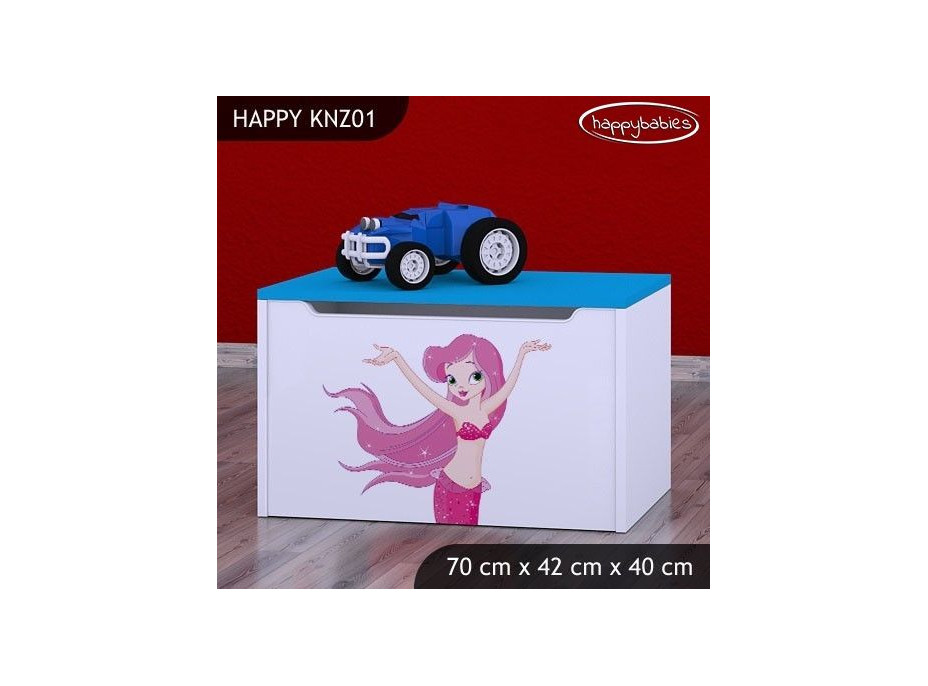 Dětská truhla na hračky ze série dětského nábytku Happy babies. Tento dětský box na hračky může sloužit na úschovu a skladování i rozměrnějších a hmotnějších hraček, her, stavebnic a dětských knih. Ideální do vybavení dětského pokoje nebo hracího koutku. Nabízíme Vám krásnou dětskou truhlu, která je vyrobena z vysoce kvalitní lamino desky a na čele má krásný barevný potisk, který se Vašemu dítěti jistě zalíbí.