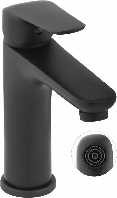 Tato elegantní umyvadlová baterie vyniká svým moderním a minimalistickým vzhledem. Tělo vodovodní baterie je vyrobeno z oceli, které je pokryto vrstvou černé matné barvy. Dohromady s hranatými tvary baterie to vytváří nadčasový celek, díky kterému bude baterie nejen funkční, ale i skvělým designovým doplňkem. Baterie se hodí do každé koupelny a lze ji bez problému kombinovat s keramikou i sklem. Systém uvnitř baterie efektivně provzdušňuje vodu, což přináší nižší spotřebu. Dodáváno včetně těsnění, hadiček i montážního materiálu.