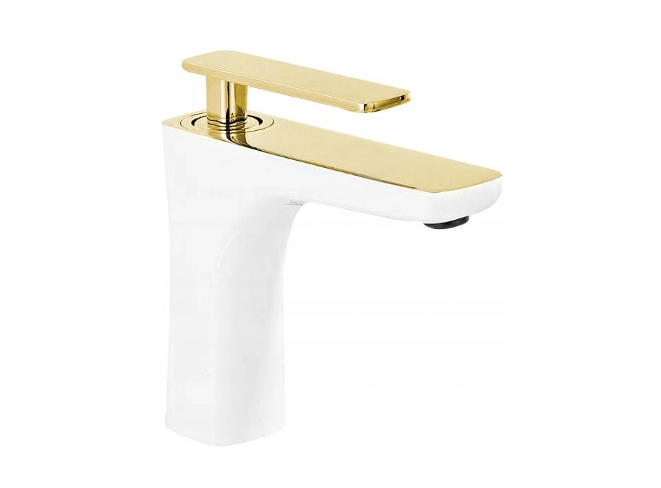 Tato designová umyvadlová baterie vyniká svým čistým moderním vzhledem a speciálním výtokem. Tělo vodovodní baterie je vyrobeno z mosazi, které je pokryto vrstvou bílé barvy se zlatými doplňky. Baterie se hodí do každé koupelny a lze ji bez problému kombinovat s keramikou i sklem. Systém uvnitř baterie efektivně provzdušňuje vodu, což přináší nižší spotřebu. Dodáváno včetně montážního příslušenství.
