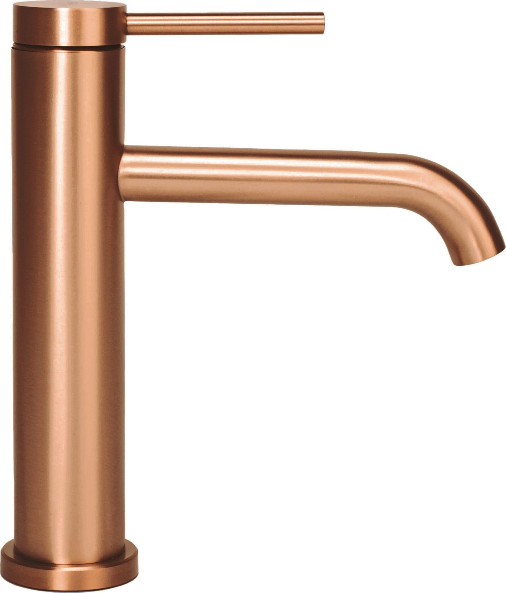 Tato elegantní umyvadlová baterie vyniká svým moderním a minimalistickým vzhledem. Tělo vodovodní baterie je vyrobeno z mosazi s povrchovou úpravou kartáčované mědi. To zajišťuje nejen estetický vzhled, ale také chrání baterii před korozí. Baterie se hodí do každé koupelny a lze ji bez problému kombinovat s keramikou i sklem. Systém uvnitř baterie efektivně provzdušňuje vodu, což přináší nižší spotřebu. Dodáváno s hadičkami, těsněním a montážními šrouby.