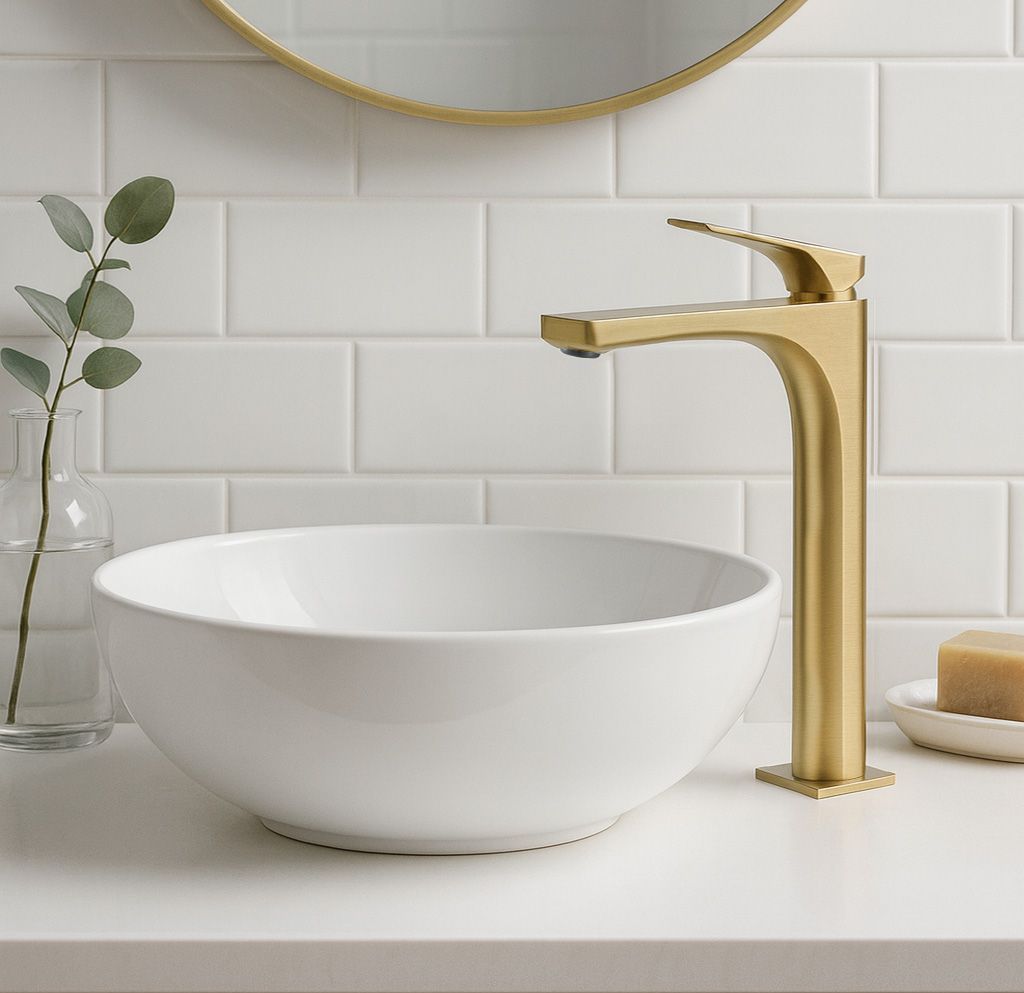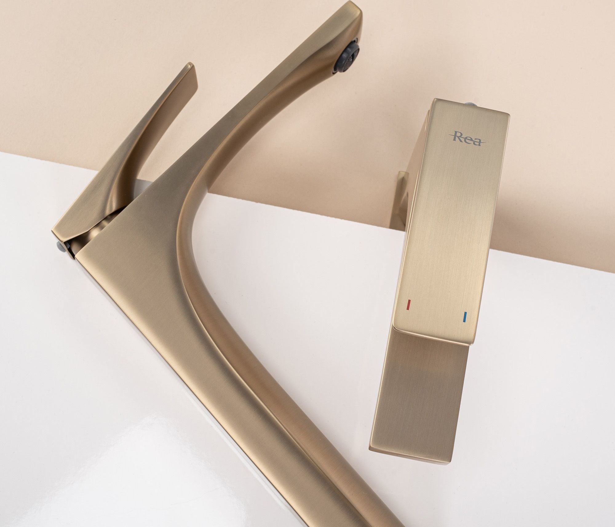 Umyvadlová baterie REA JOE - vysoká - zlatá broušená