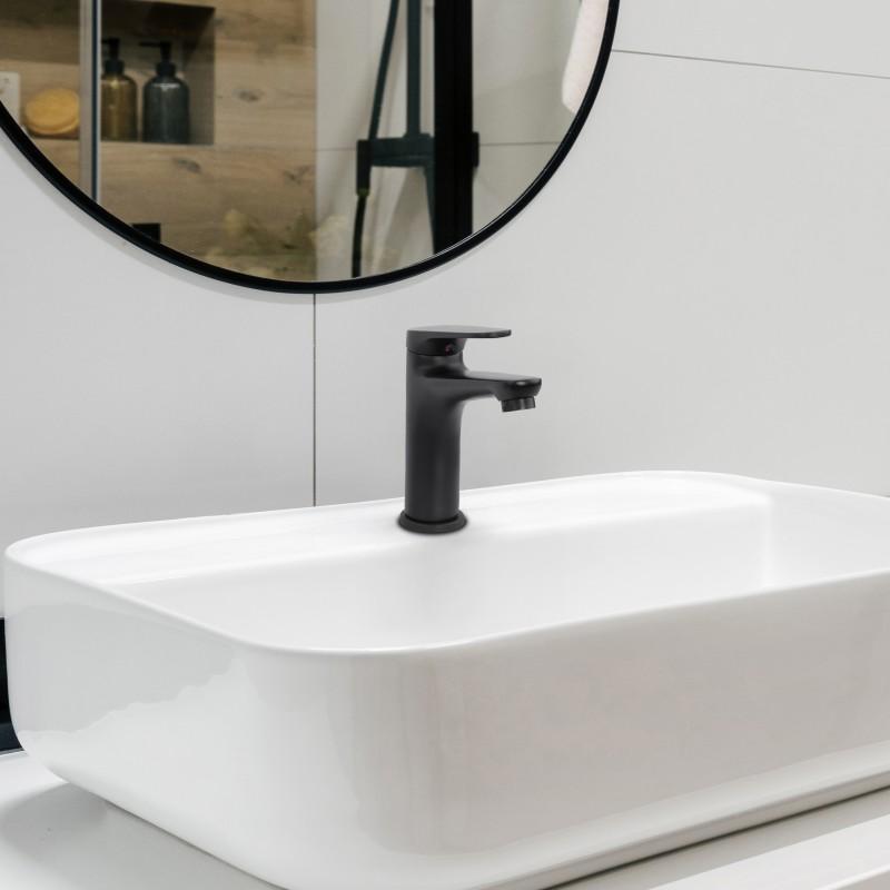 Tato elegantní umyvadlová baterie vyniká svým moderním a minimalistickým vzhledem. Tělo vodovodní baterie je vyrobeno z oceli, které je pokryto vrstvou černé matné barvy. Dohromady s hranatými tvary baterie to vytváří nadčasový celek, díky kterému bude baterie nejen funkční, ale i skvělým designovým doplňkem. Baterie se hodí do každé koupelny a lze ji bez problému kombinovat s keramikou i sklem. Systém uvnitř baterie efektivně provzdušňuje vodu, což přináší nižší spotřebu. Dodáváno včetně těsnění, hadiček i montážního materiálu.