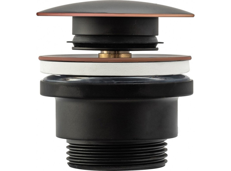 Kvalitní umyvadlová výpusť s click - clack zátkou v moderní černé barvě s patinou. Výpusť je s velkou zátkou a je vyrobena z kvalitní mosazi. Click-clack zátka je univerzální, hodí se jak pro umyvadla s přepadovým otvorem, tak pro ty bez otvoru pro přepad. Díky speciálnímu výrobnímu procesu je výpusť chráněna proti korozi, poškození barev a zabarvení.