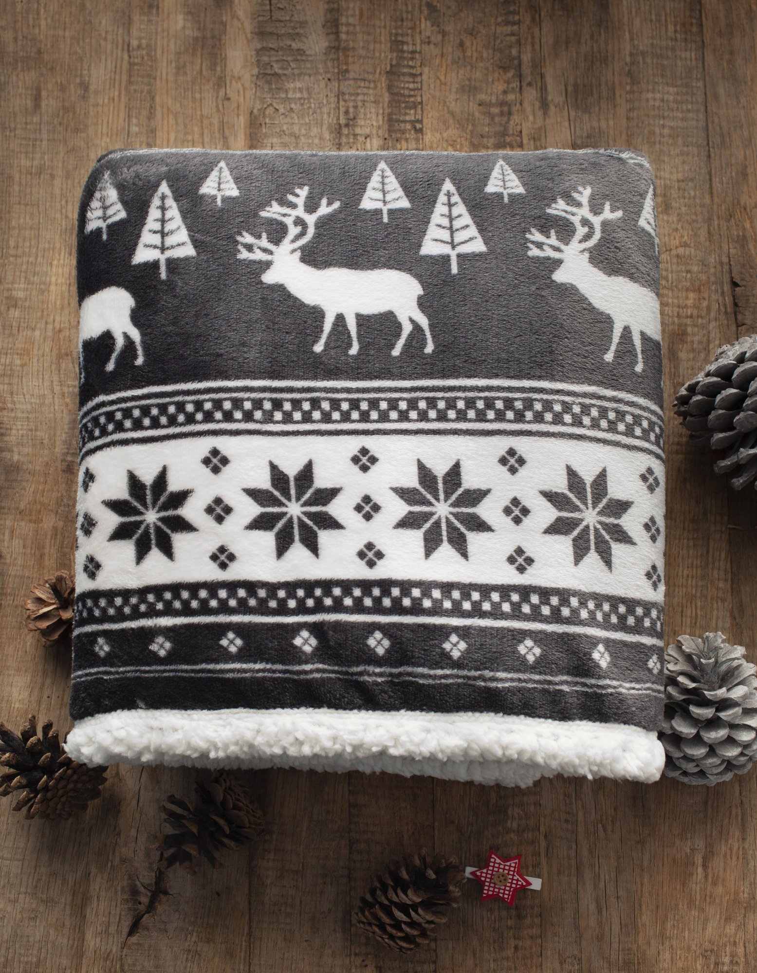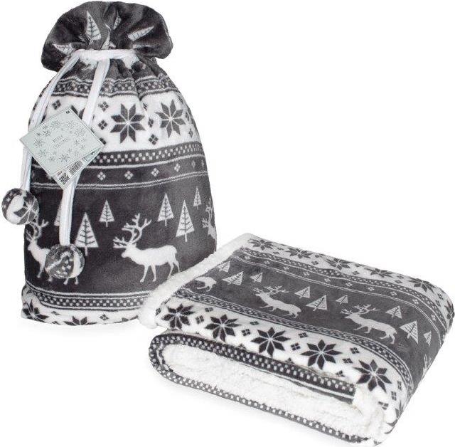 Vánoční deka SACO s beránkem 127x152 cm v ozdobném obalu - tmavě šedá