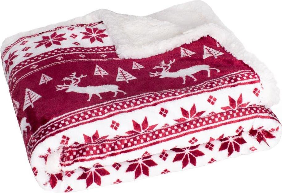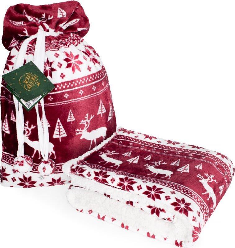 Vánoční deka SACO s beránkem 150x200 cm v ozdobném obalu - bordó