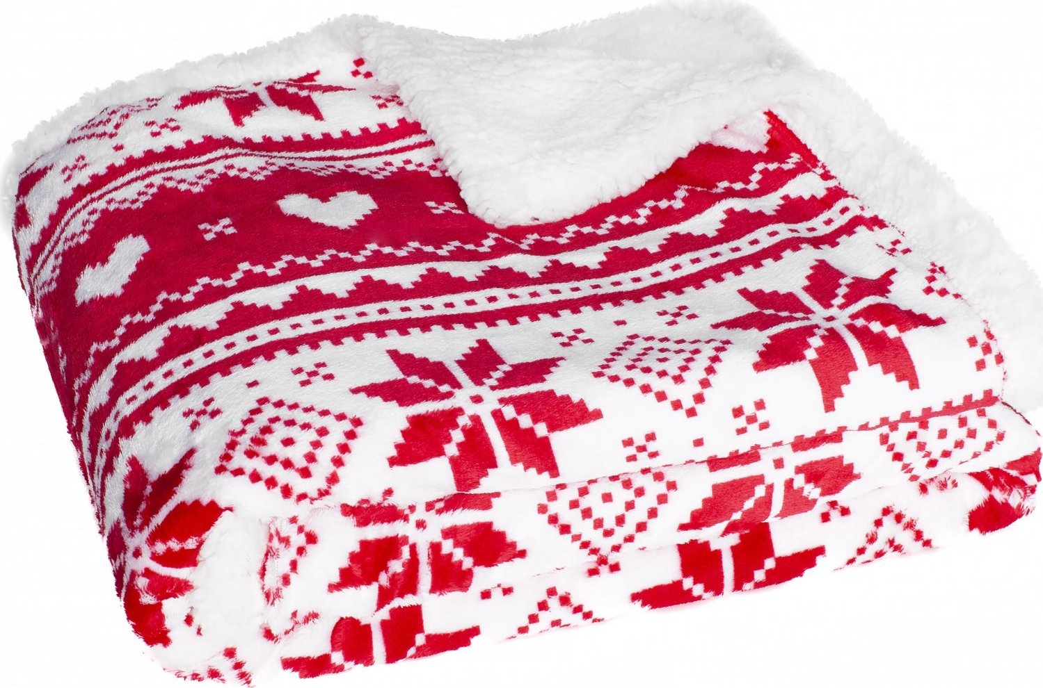Vánoční deka SACO s beránkem 150x200 cm v ozdobném obalu - červená