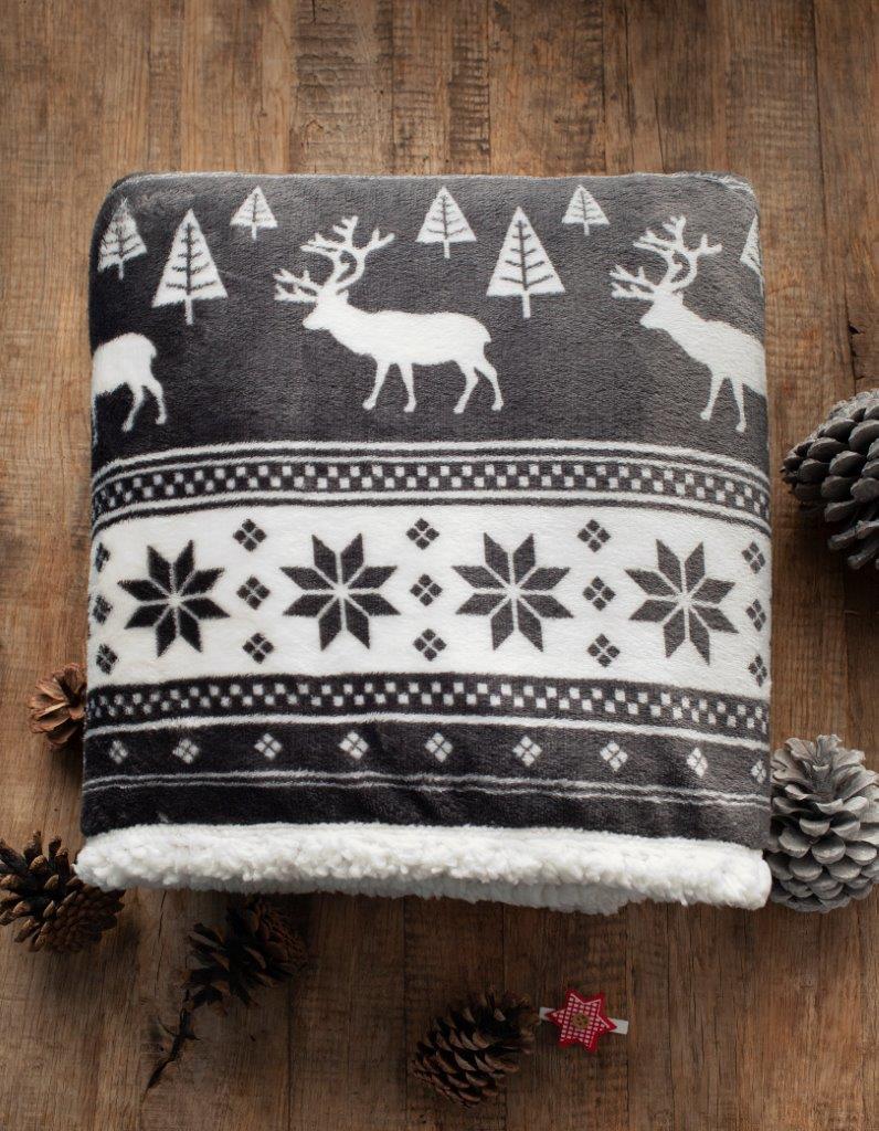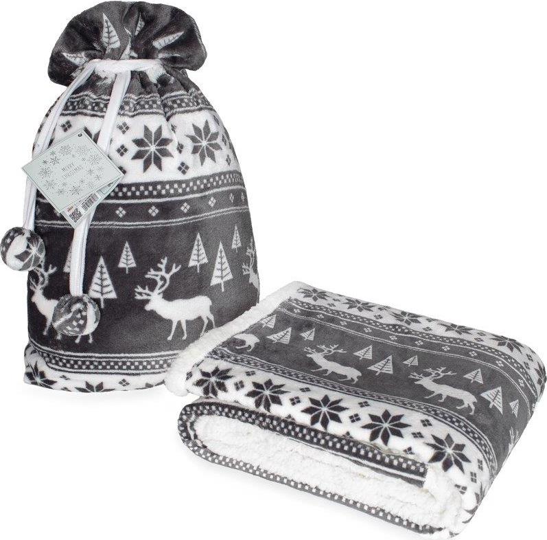 Vánoční deka SACO s beránkem 150x200 cm v ozdobném obalu - tmavě šedá