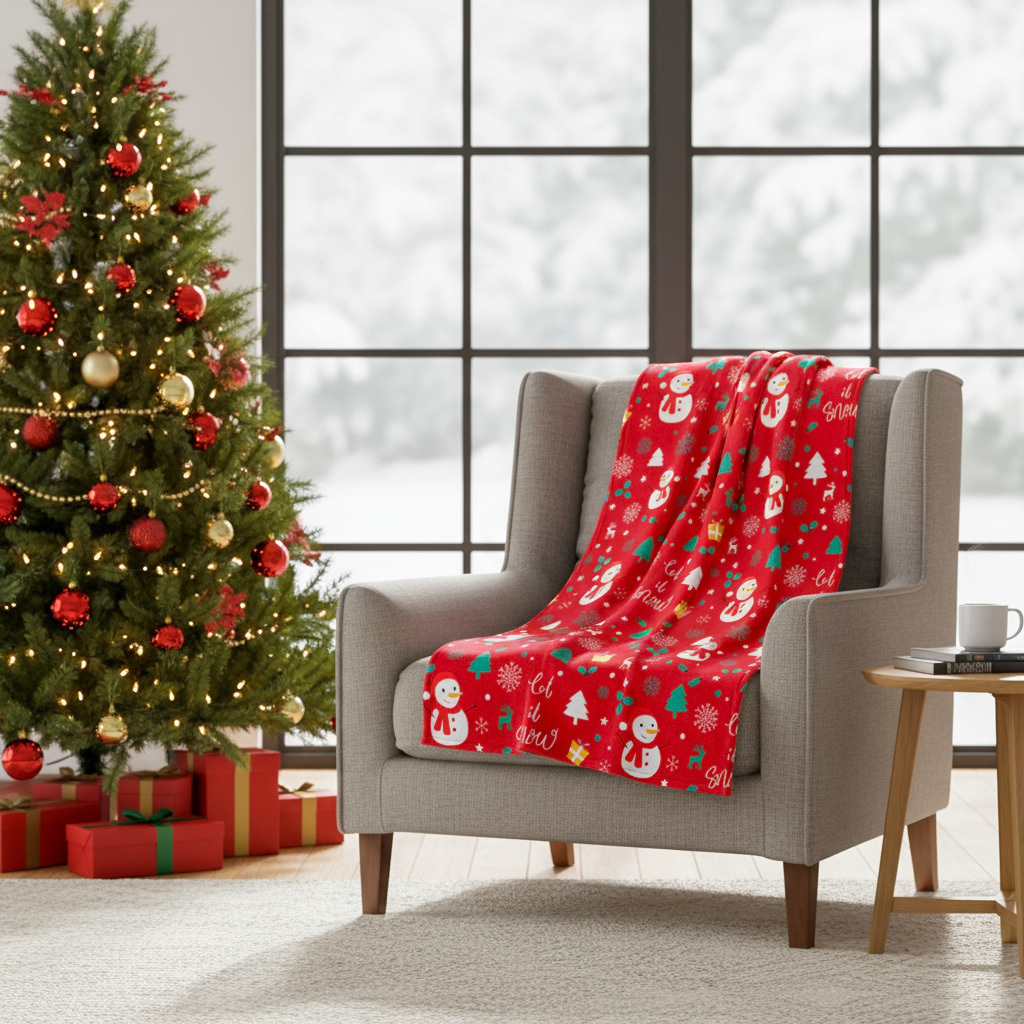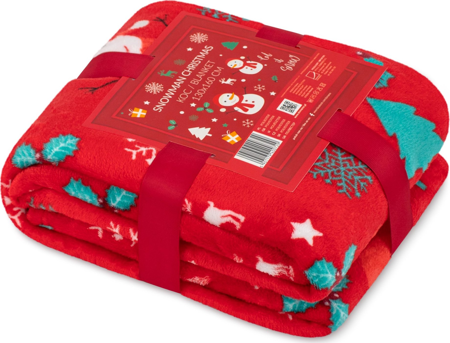 Vánoční deka SNĚHULÁK 130x160 cm - červená