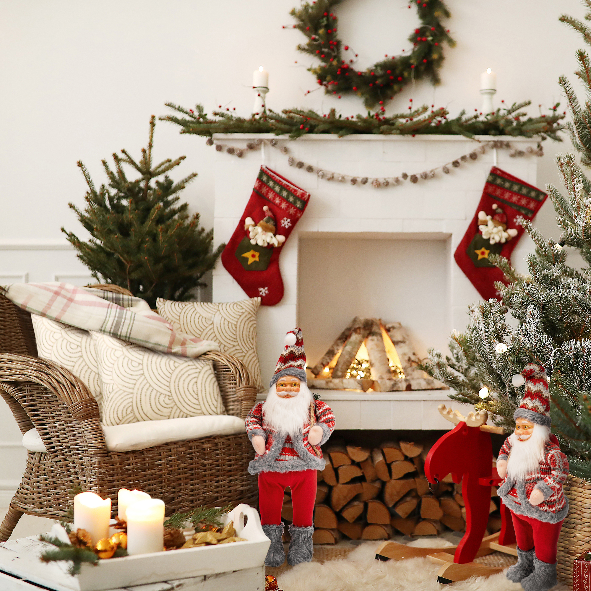 Krásná figurka Santa Claus s pytlem a dekoracemi je skvělou ozdobou vašeho domova, která vám do domácnosti přinese vánoční náladu. Figurka je vyrobena z plastu a potažena příjemným na dotek bavlněným oblečením zajišťujícím trvanlivost a vysokou kvalitu.