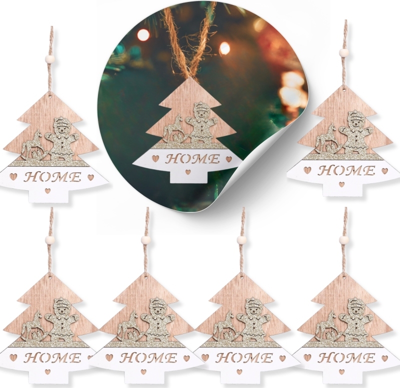 Vytvořte si doma jedinečnou sváteční atmosféru s touto elegantní sadou. Perfektní dárek nebo dekorace pro sváteční období. Tato sada pěti dřevěných vánočních ozdob je perfektní volbou pro výzdobu vašeho domova v tomto svátečním období. Tyto závěsné ozdoby lze použít různými způsoby – jako ozdoby na stromeček, girlandy, věnce nebo jako dárkové dekorace. Kombinace dřeva a bílé je činí vhodnými pro mnoho stylů zdobení, tradičních i moderních. Dřevěné vánoční stromky jsou zdobeny motivy sněhuláků a houpacích koní, což jim dodává sváteční nádech. Tato sada vytvoří dokonalou sváteční atmosféru plnou kouzla a tepla. Sada je perfektním dárkem nebo dekorací ve vašem domově, abyste si skutečně užili kouzlo Vánoc!