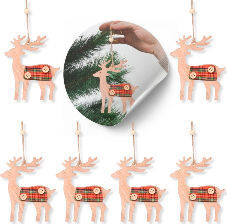 Vánoční dřevěný ozdoby na stromeček - Jelen - 6 kusů
