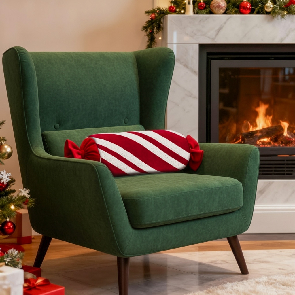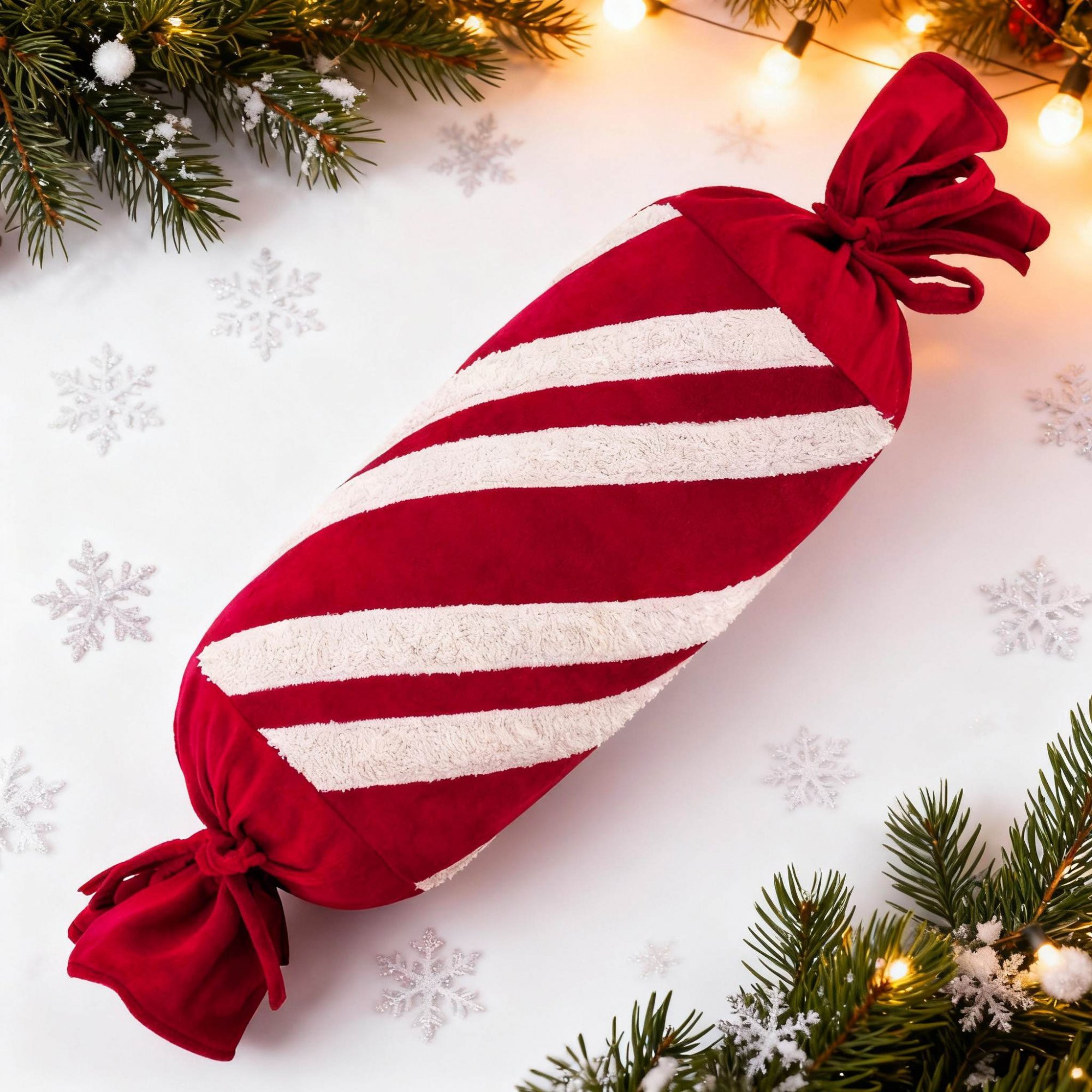 Polštář SWEET CANDY je okouzlující a stylový doplněk, který do vašeho interiéru vnese radostnou a sváteční atmosféru. Jeho jedinečný tvar bonbónu a klasické červenobílé pruhy z něj činí dokonalou kombinaci sváteční tradice a moderního designu. Je to perfektní volba pro ty, kteří oceňují dekorace s charakterem – měkké, výrazné a okouzlující.