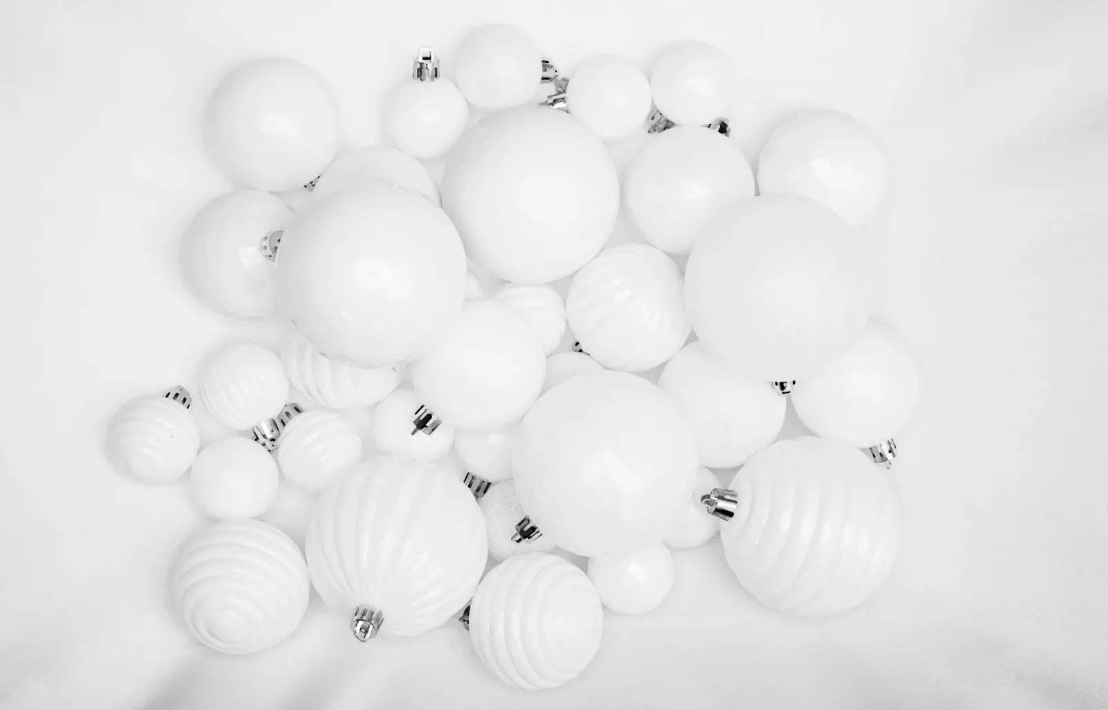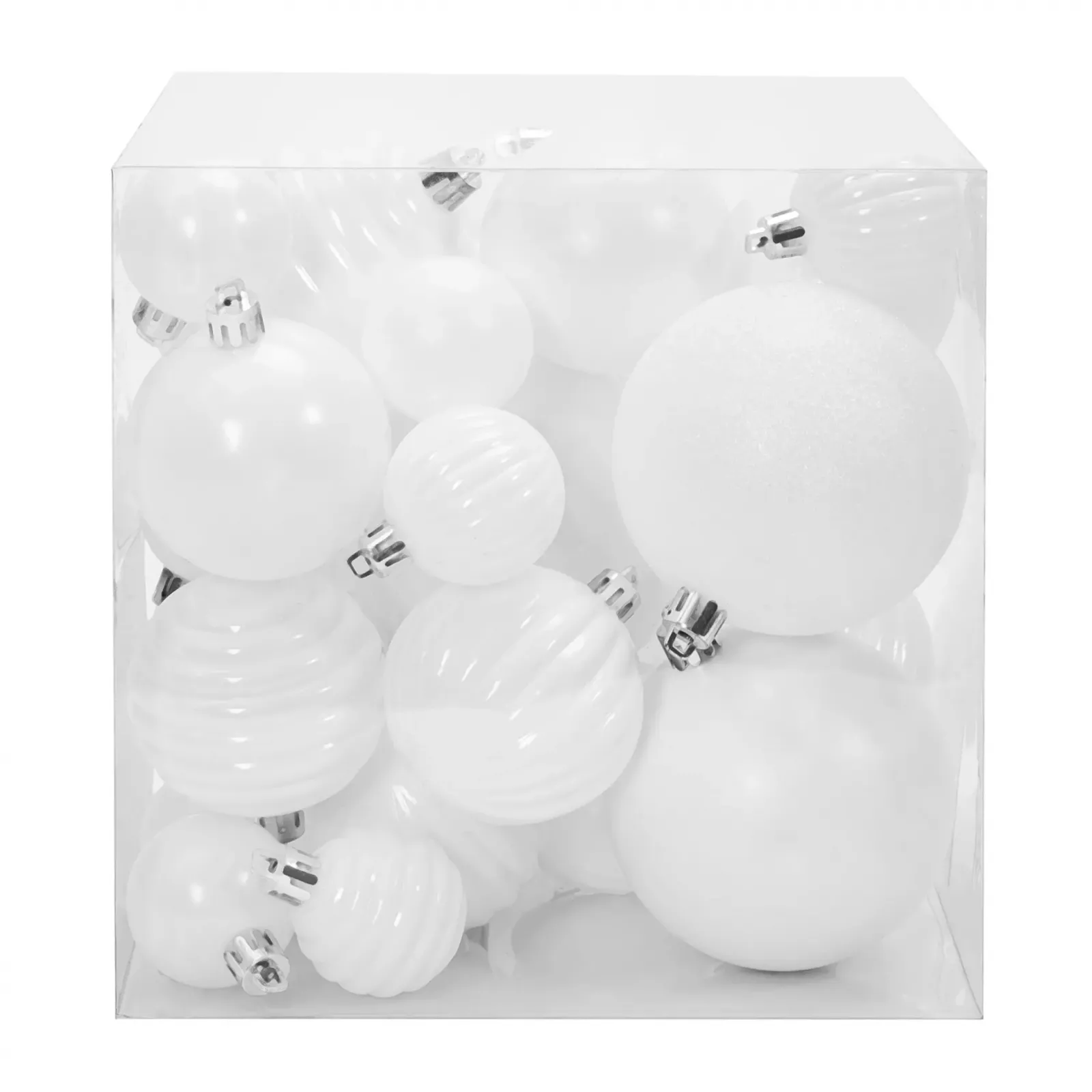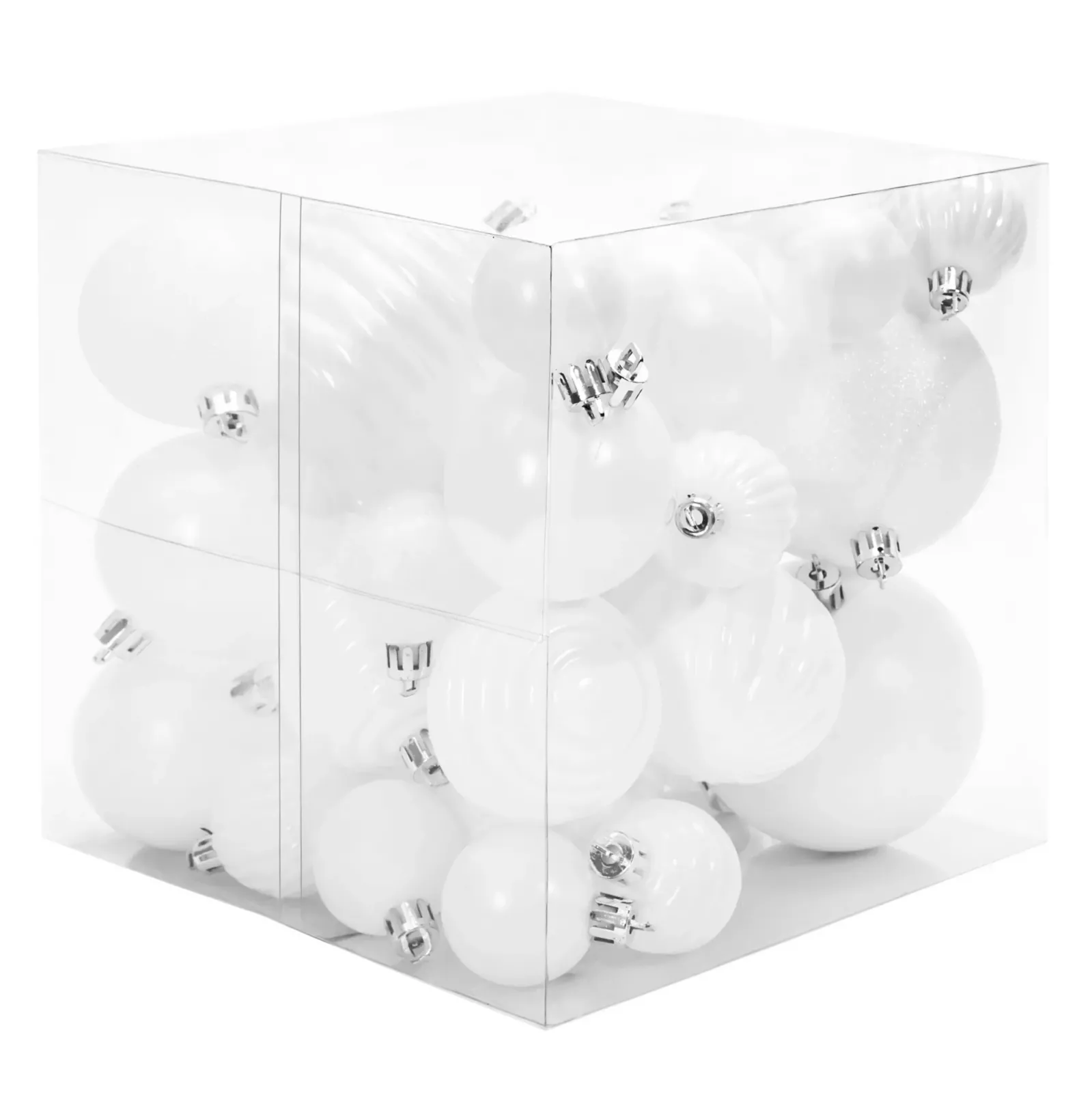 Vánoční závěsné baňky na stromeček - 3 velikosti - 6 druhů - 36 ks - bílé