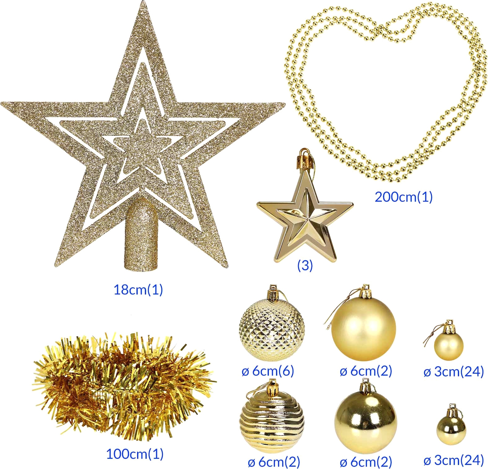 Vánoční závěsné baňky na stromeček ESTRELLA 66 kusů - zlaté