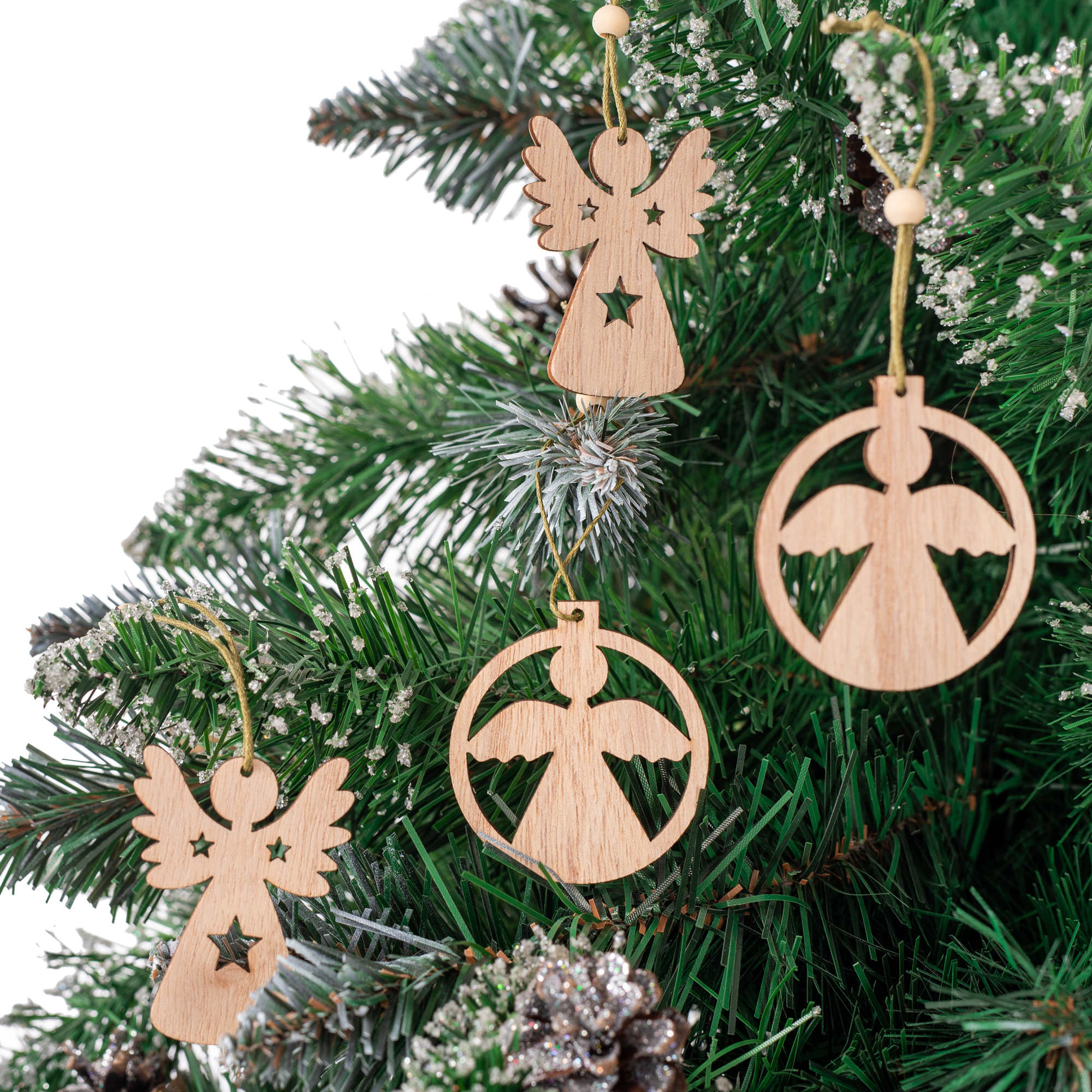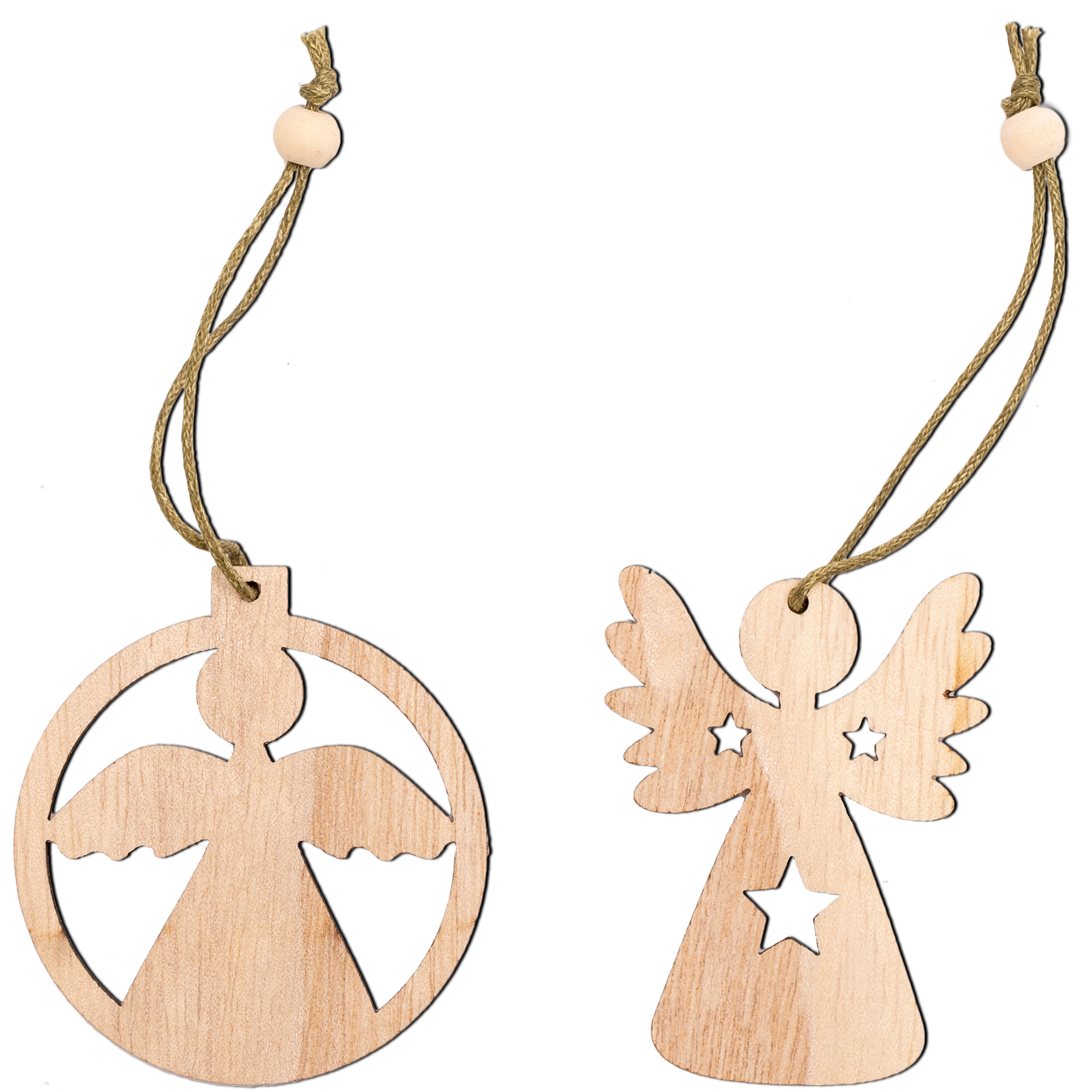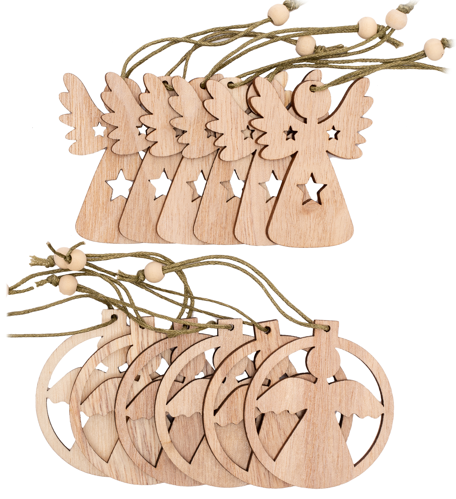 Vánoční závěsné ozdoby na stromeček ze dřeva 12 ks - andílci