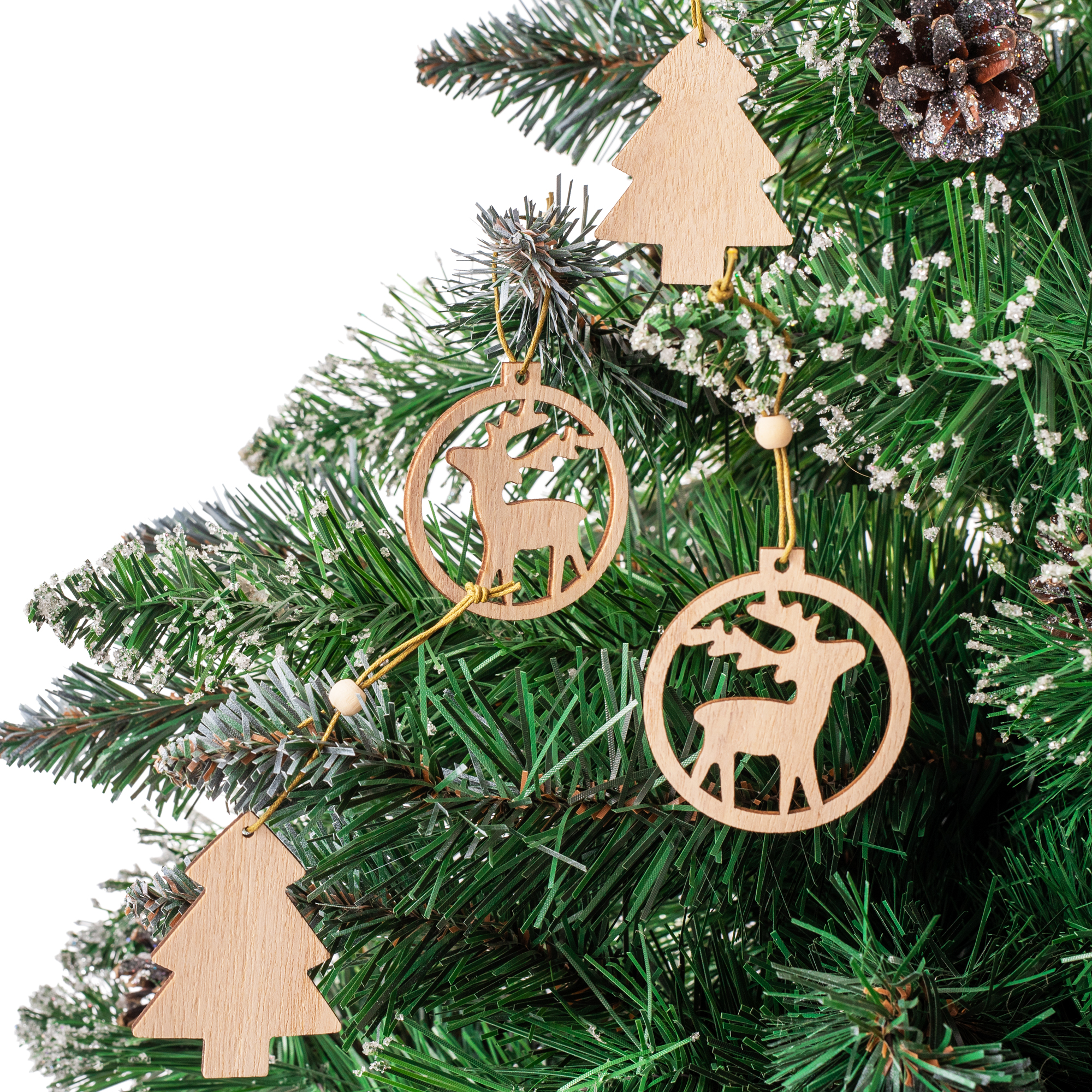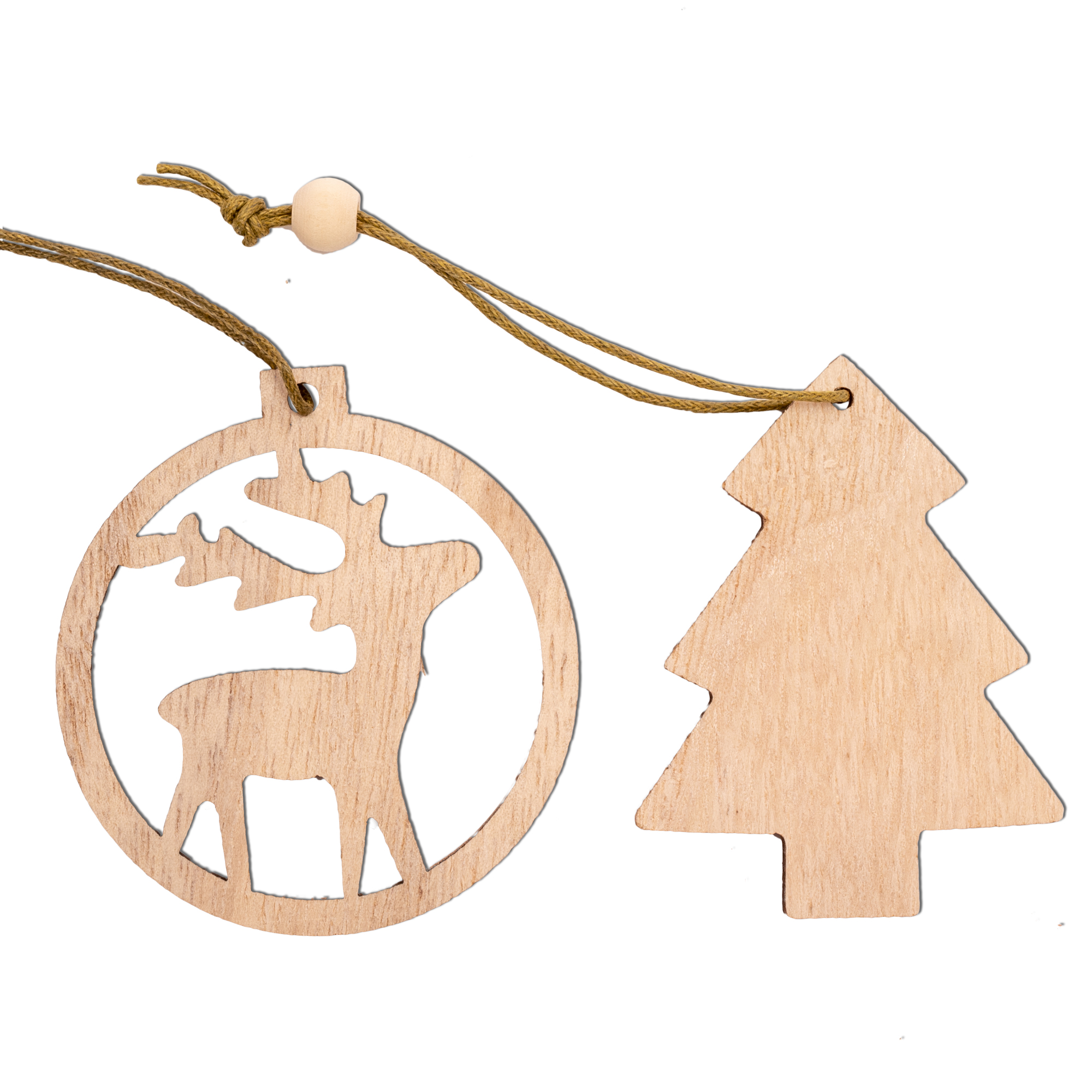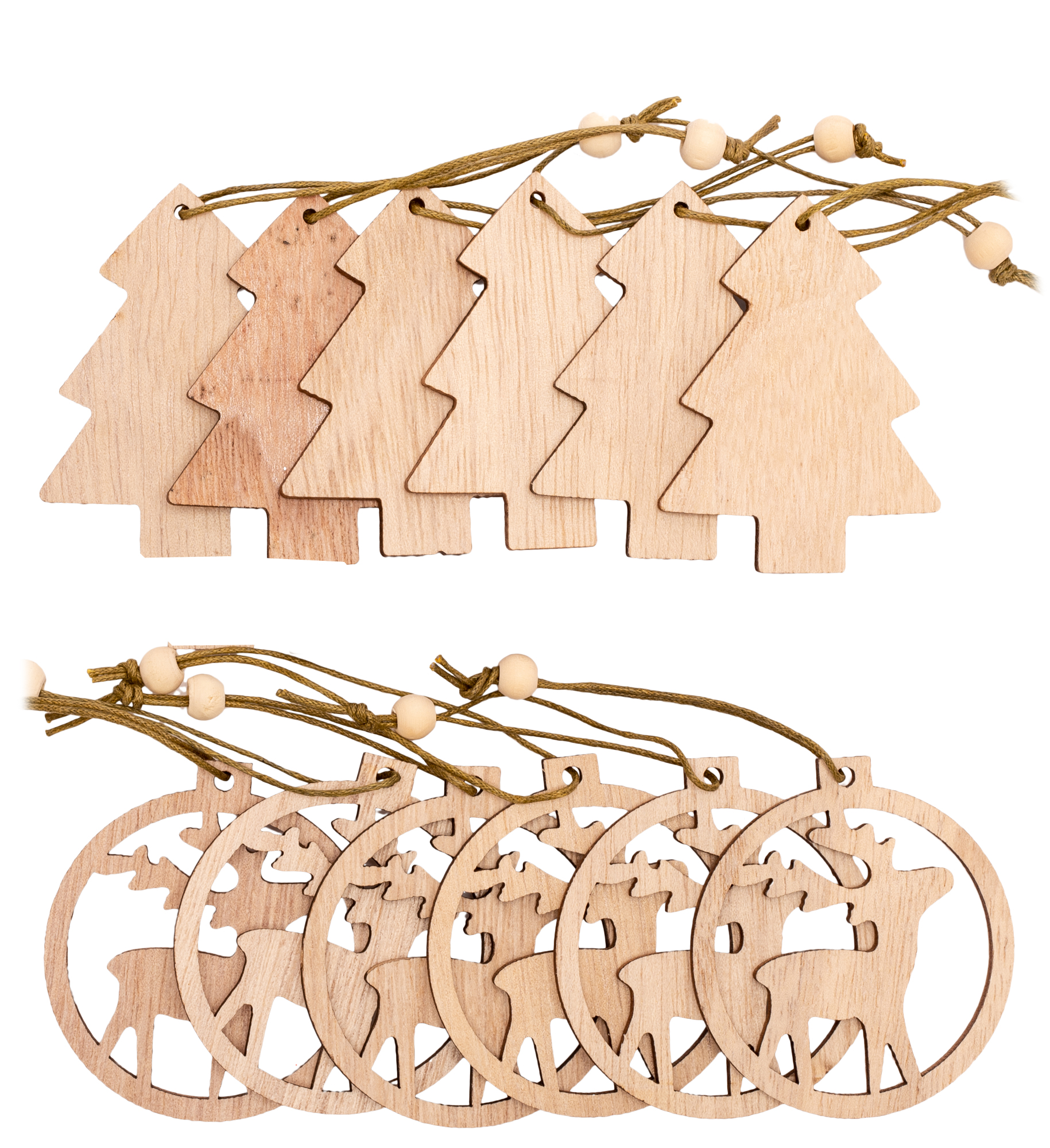 Vánoční závěsné ozdoby na stromeček ze dřeva 12 ks - stromky a sobi