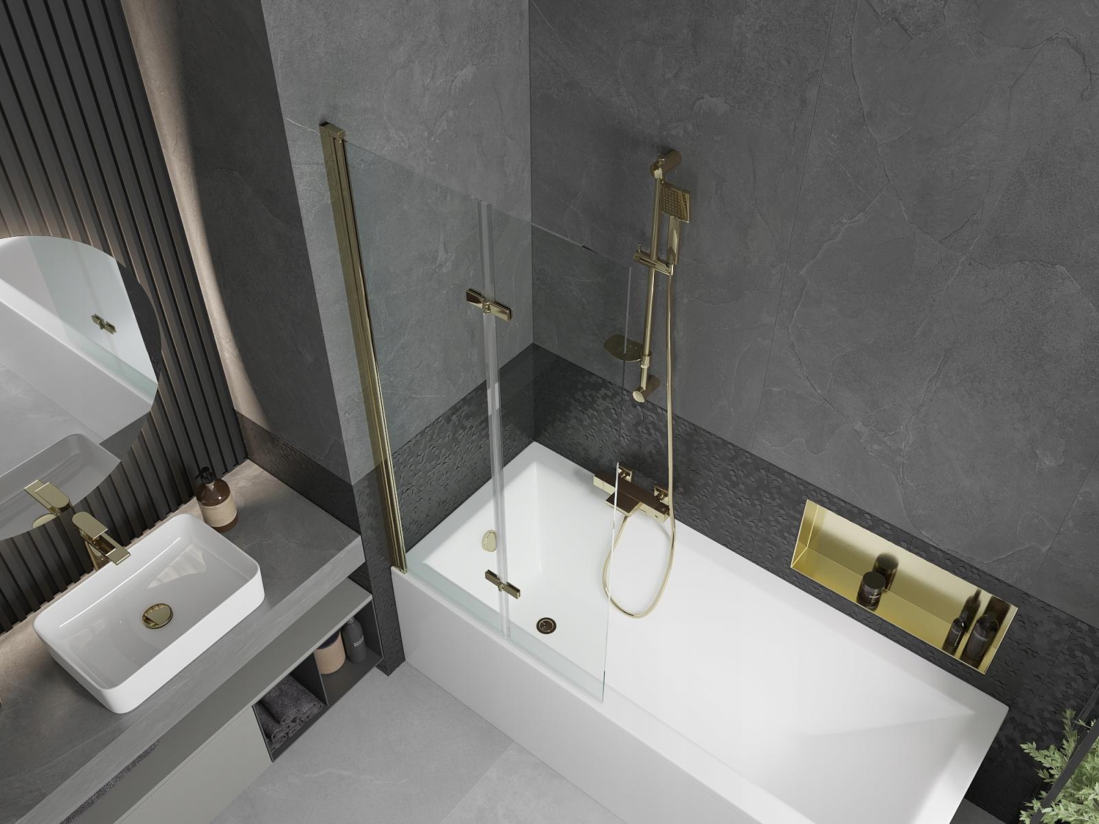 Vanová zástěna CASTOR 80x150 cm - zlatá - čiré sklo
