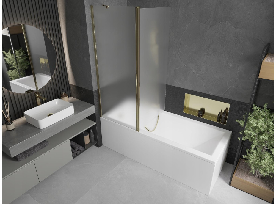 Vanová zástěna FLIP 140x150 cm - zlatá - mléčné sklo