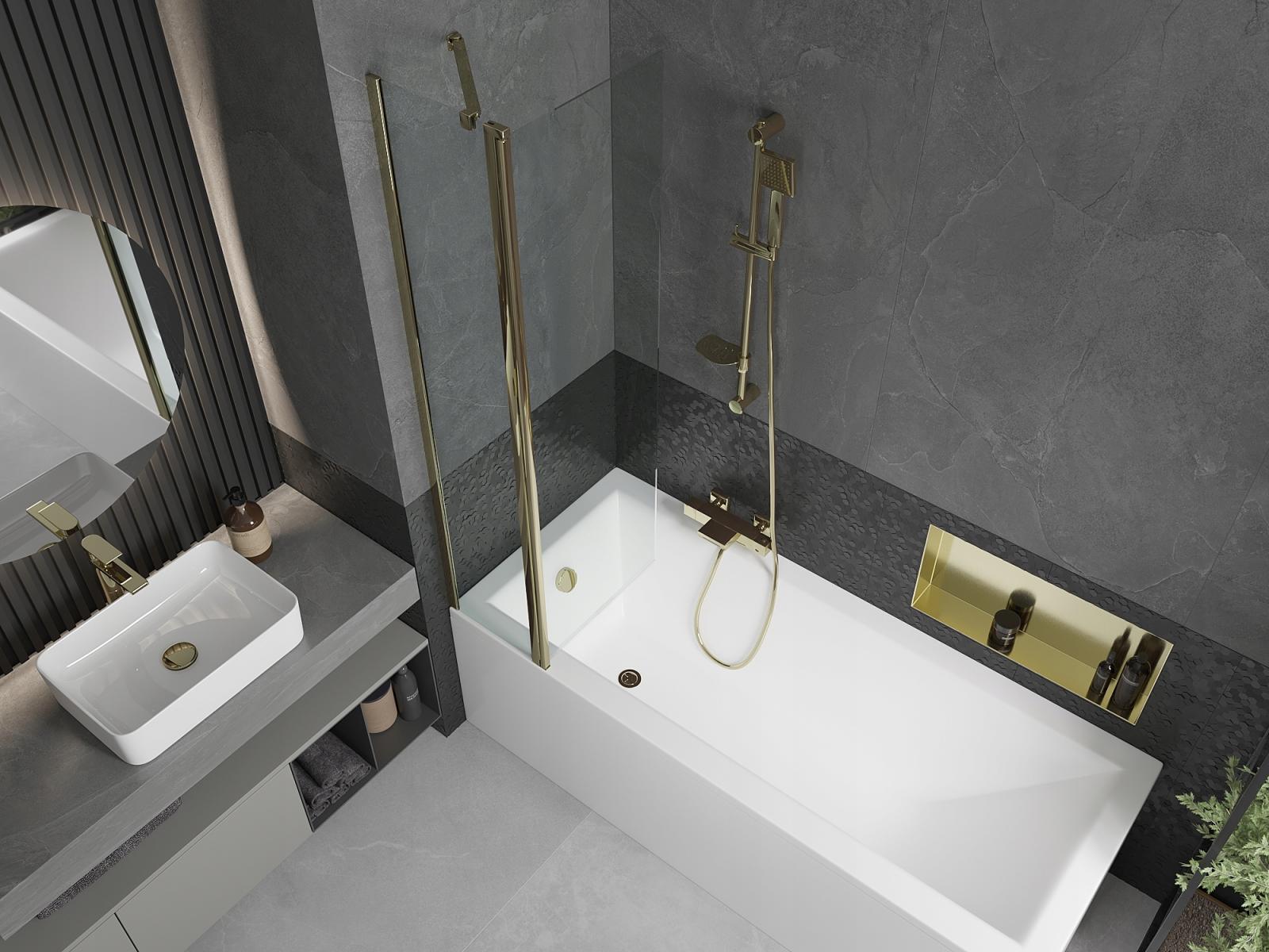 Vanová zástěna FLIP 80x150 cm - zlatá - čiré sklo