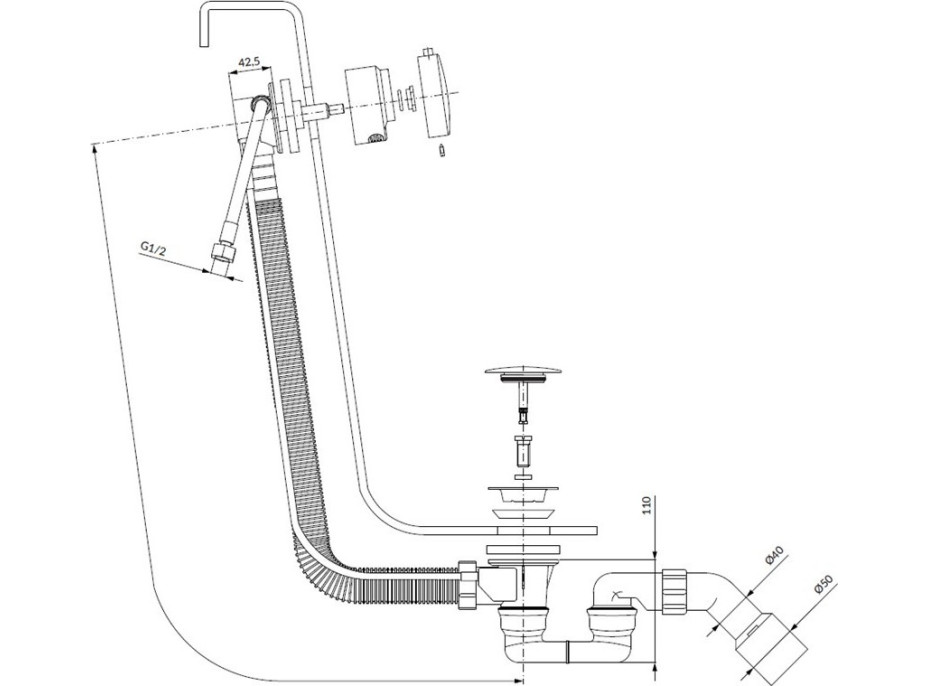 - určeno pro vany s průměrem odtoku ø 5,2 cm