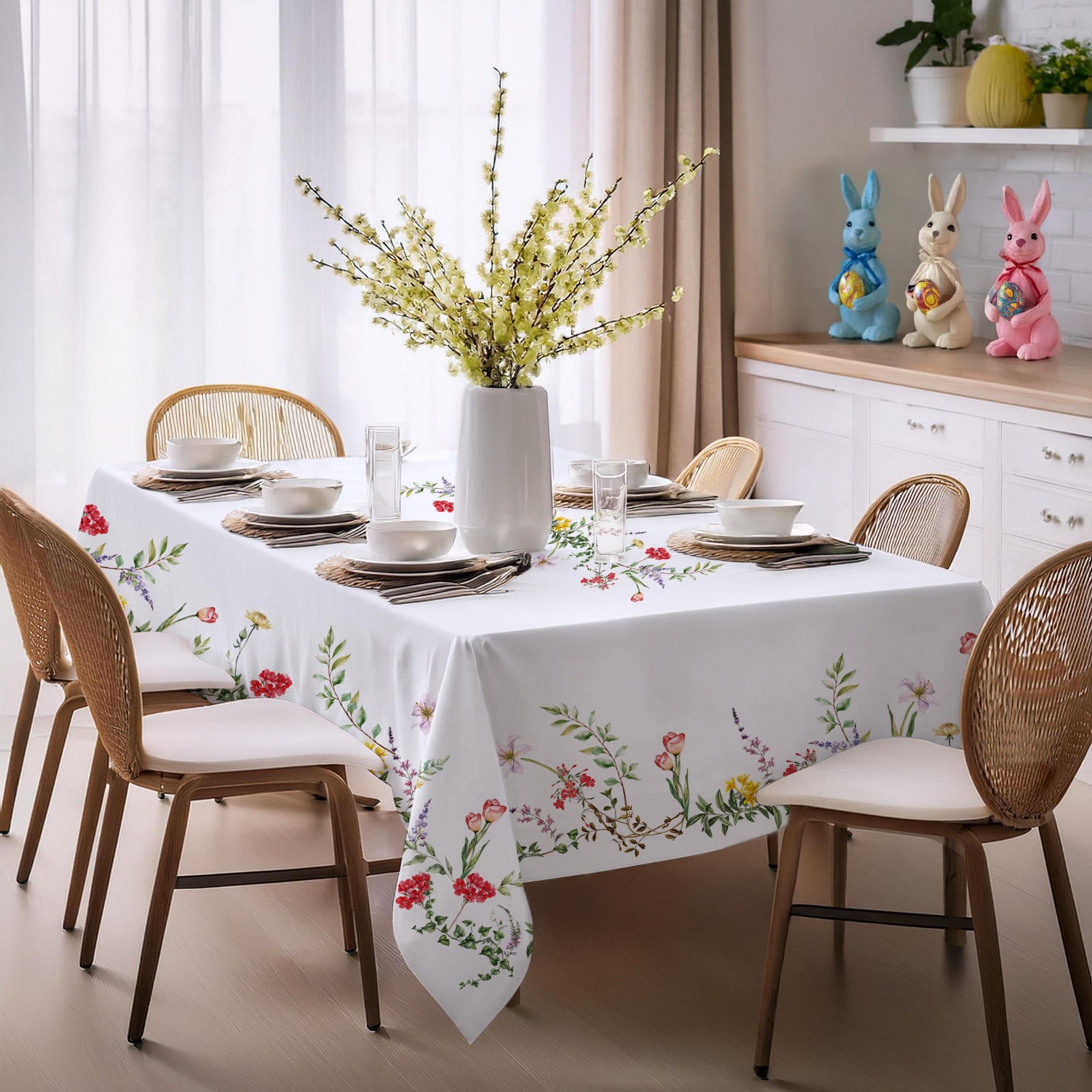 Velikonoční ubrus BLISS Květy - 140x200 cm - bílý
