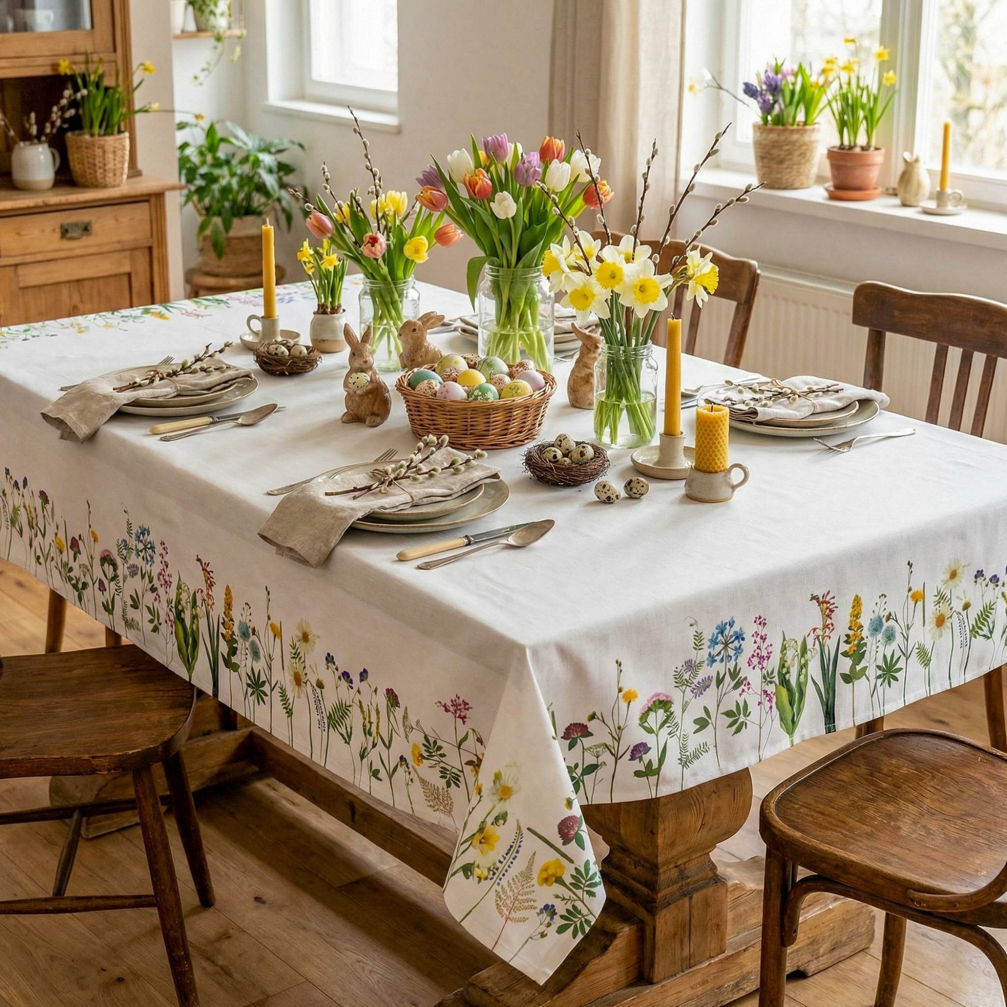 Velikonoční ubrus BLOOM Květiny - 130x180 cm - bílý
