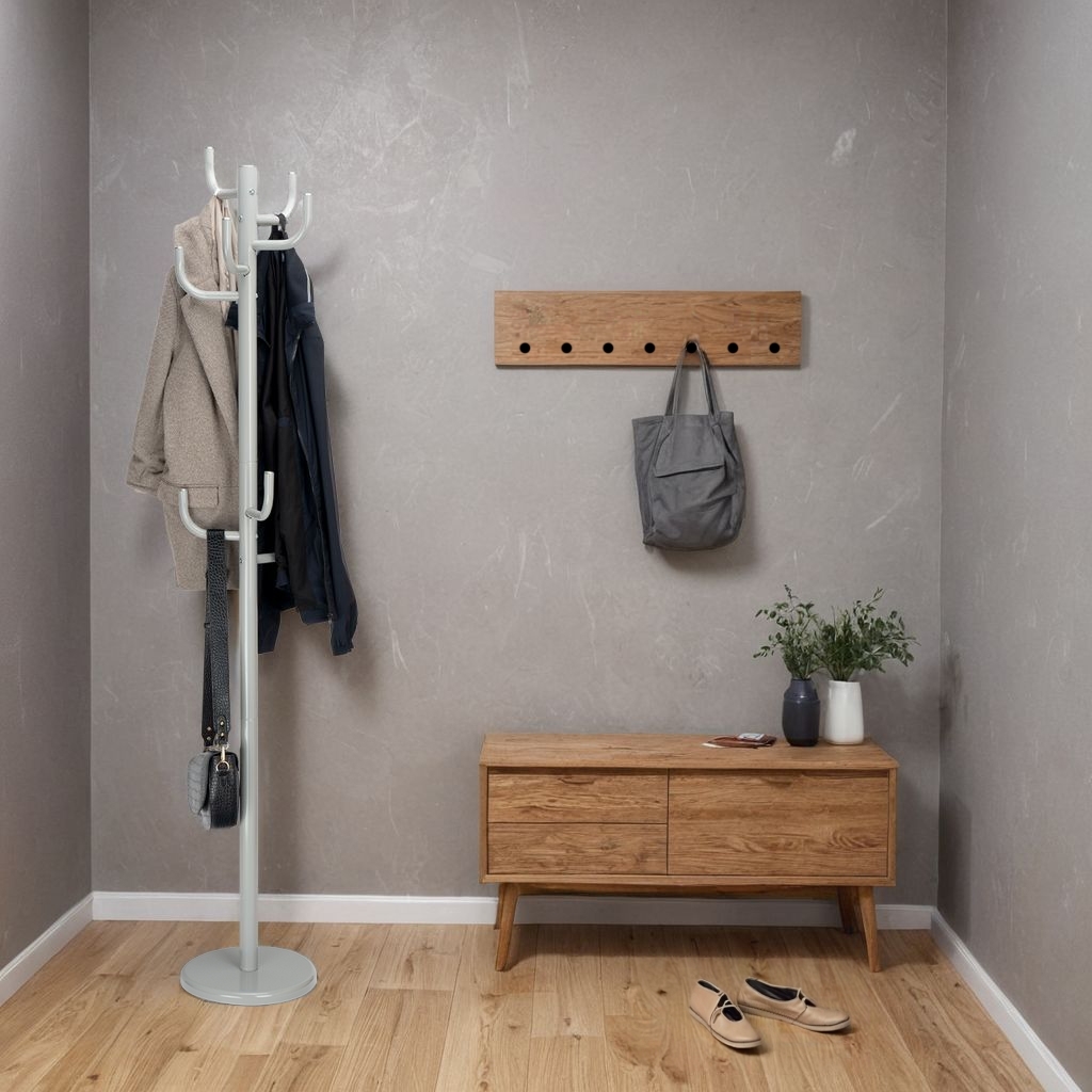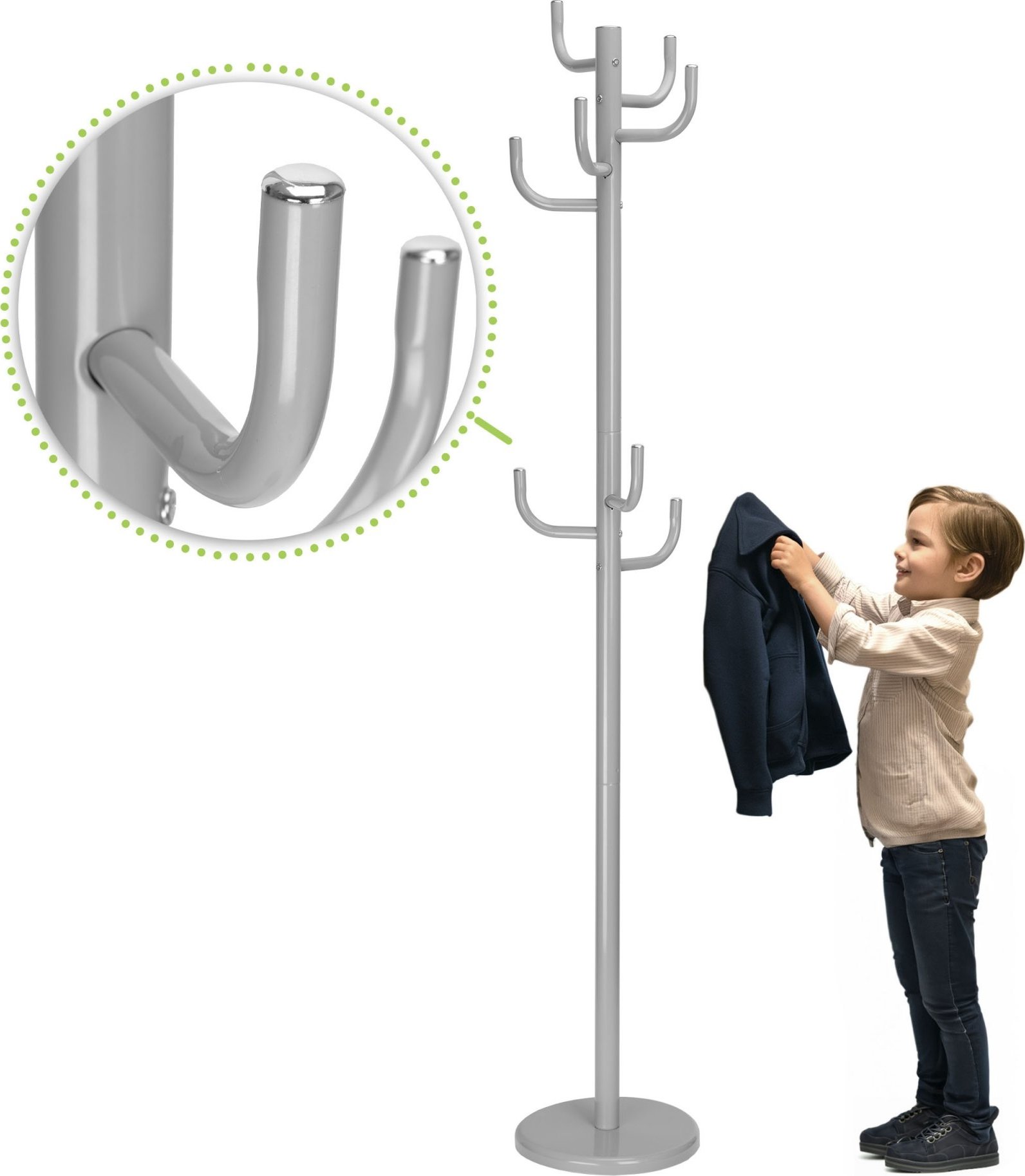Věšák na šaty Viktor je elegantním a funkčním řešením pro váš interiér. Díky němu získáte prostor pro svrchní oděvy, které pomohou udržet pořádek v předsíni, ložnici nebo kanceláři. Pevná konstrukce z práškově lakované oceli zajišťuje odolnost a stabilitu a moderní design v šedé barvě zapadne do každého interiéru. Investicí do tohoto produktu získáte nejen praktické úložné řešení, ale také stylový doplněk, který dodá vašemu prostoru charakter.