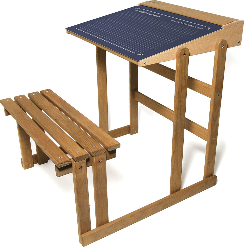 Krásný dřevěný školní stůl v tradičním designu. Psací plocha je oboustranná, z jedné strany na křídy a z druhé na fixy. Lavice ukrývá i velký úložný prostor. Vyrobeno ve Francii. Dubová barva dřeva. Rozměry 52 x 59 x 63 cm. Vyžaduje montáž.