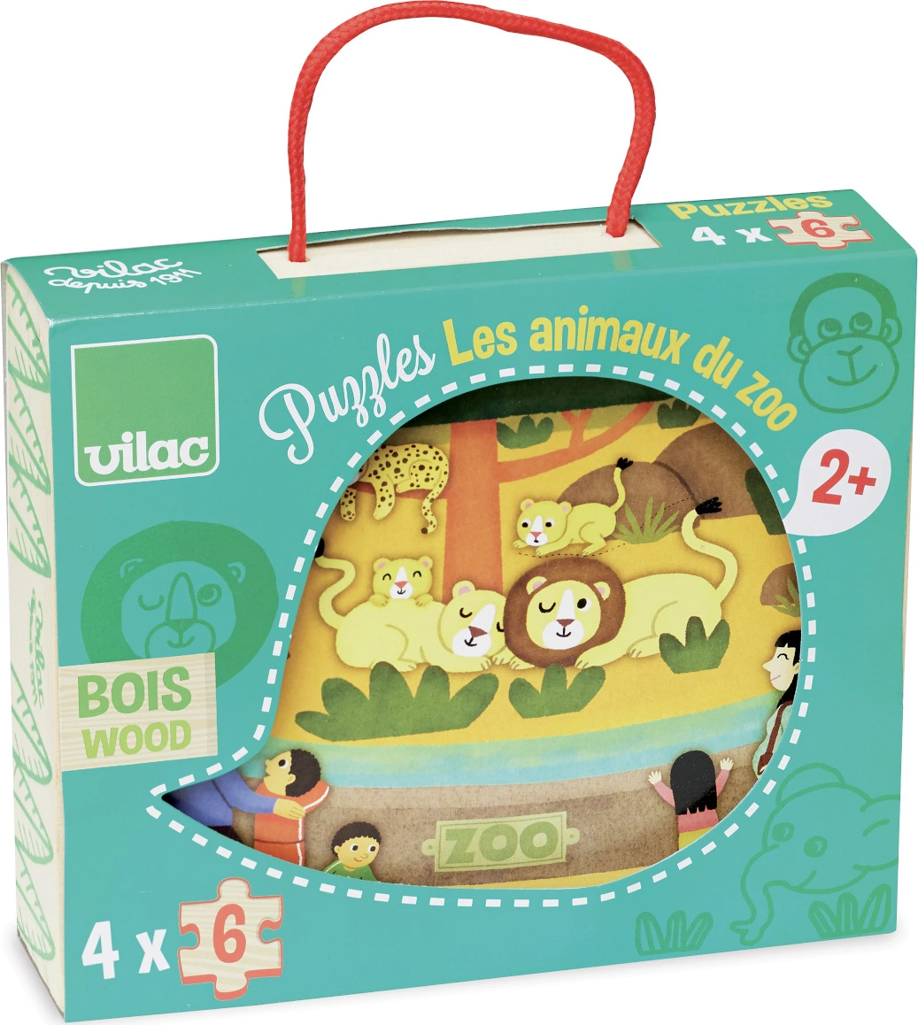 Dřevěné puzzle o šesti dílcích s tematikou ZOO. Zabaleno v pěkném dřevěném boxu s bavlněnou rukojetí.