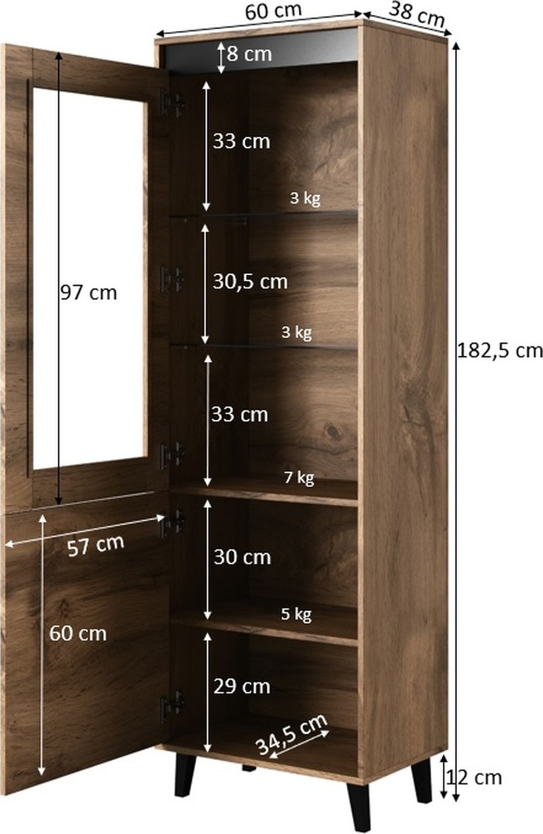 - Rozměry [ŠxHxV]: 60 x 38 x 182,5 cm