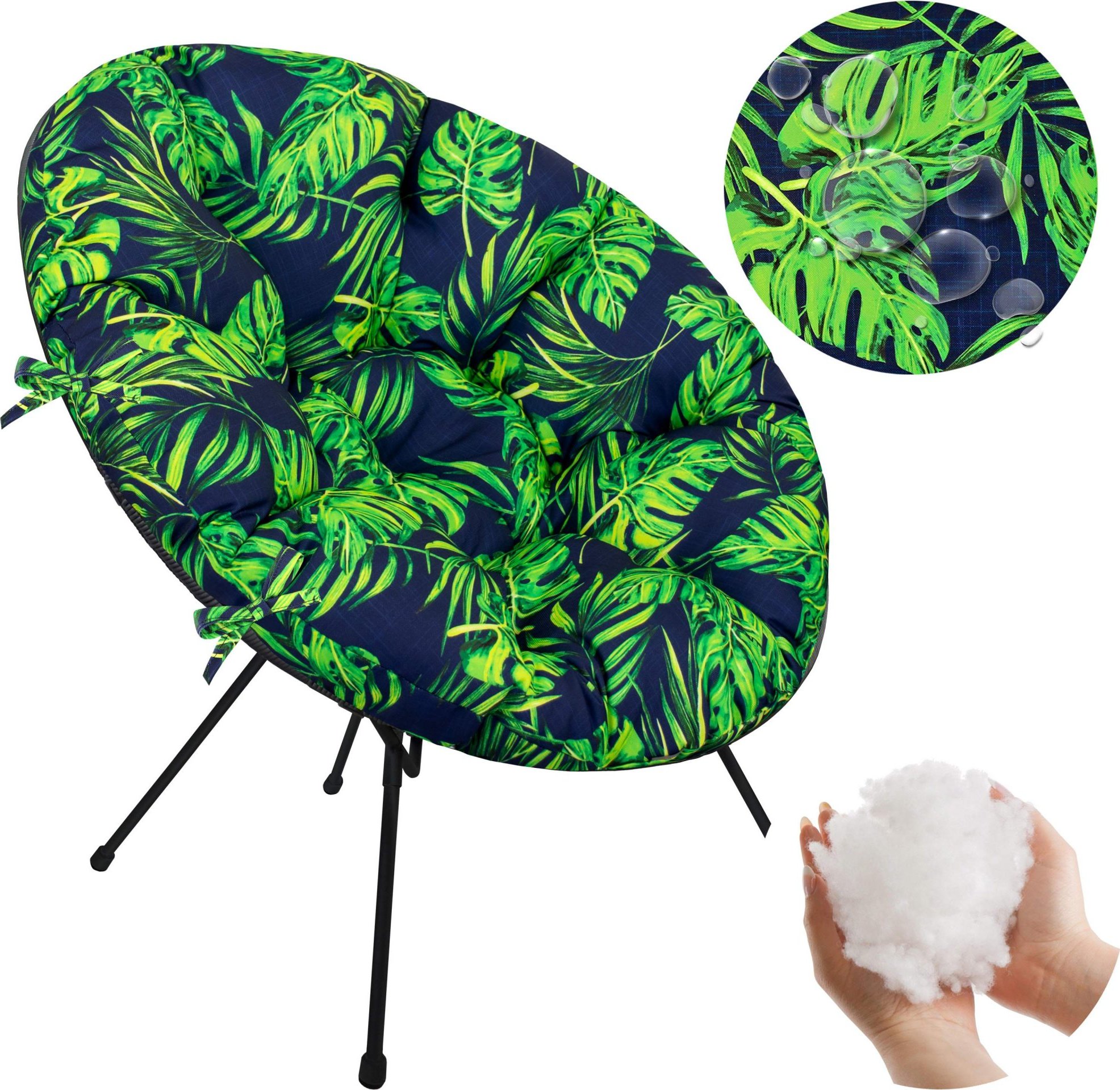 Kvalitní, měkký a nadýchaný polštář je ideální do zahradních křesel ACAPULCO, kde vyplní celou konstrukci. Tento polštář s kvalitním potahem z pevné voděodolné textílie Oxford se postará o vysoký komfort. Výplň polštáře je vyrobena ze silikonového vlákna, které nehrudkuje a nedeformuje se pod vlivem tělesné hmotnosti. Výhodou polštáře je jeho snadná údržba. Můžete jej otřít mokrým hadříkem, abyste odstranili drobné nečistoty nebo jednoduše osvěžili jeho vzhled. Vysoká kvalita použitých materiálů, přesnost a solidnost zpracování zaručují odolnost při používání po dlouhou dobu. Polštář lze přivázat ke křeslu pomocí všitých 4 provázků, což vám umožní udržet polštář vždy na svém místě.