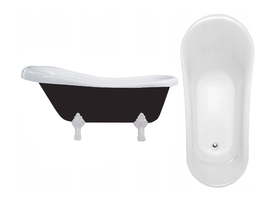 Volně stojící akrylátová vana RETRO 170x75 cm - bílá/černá