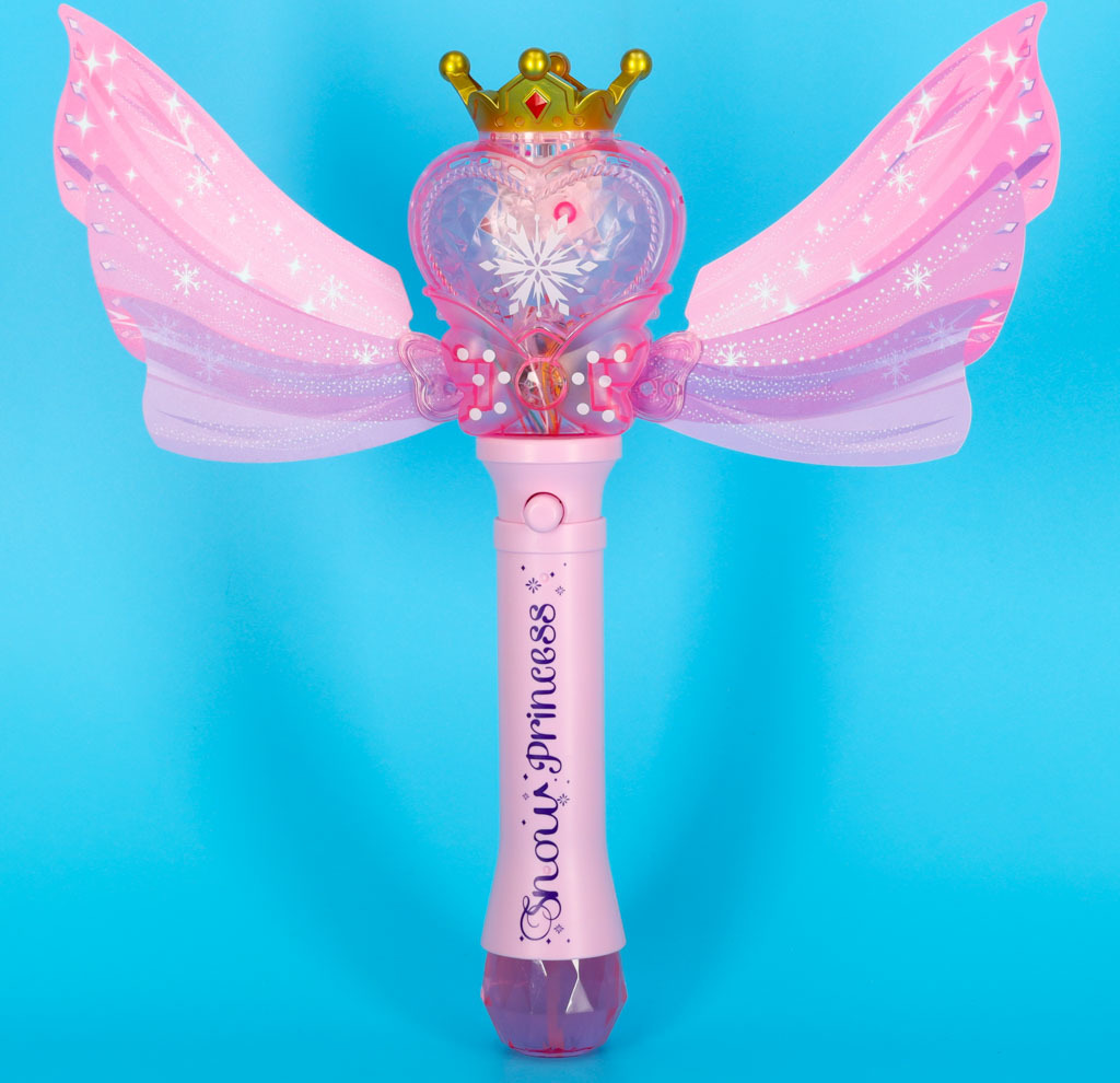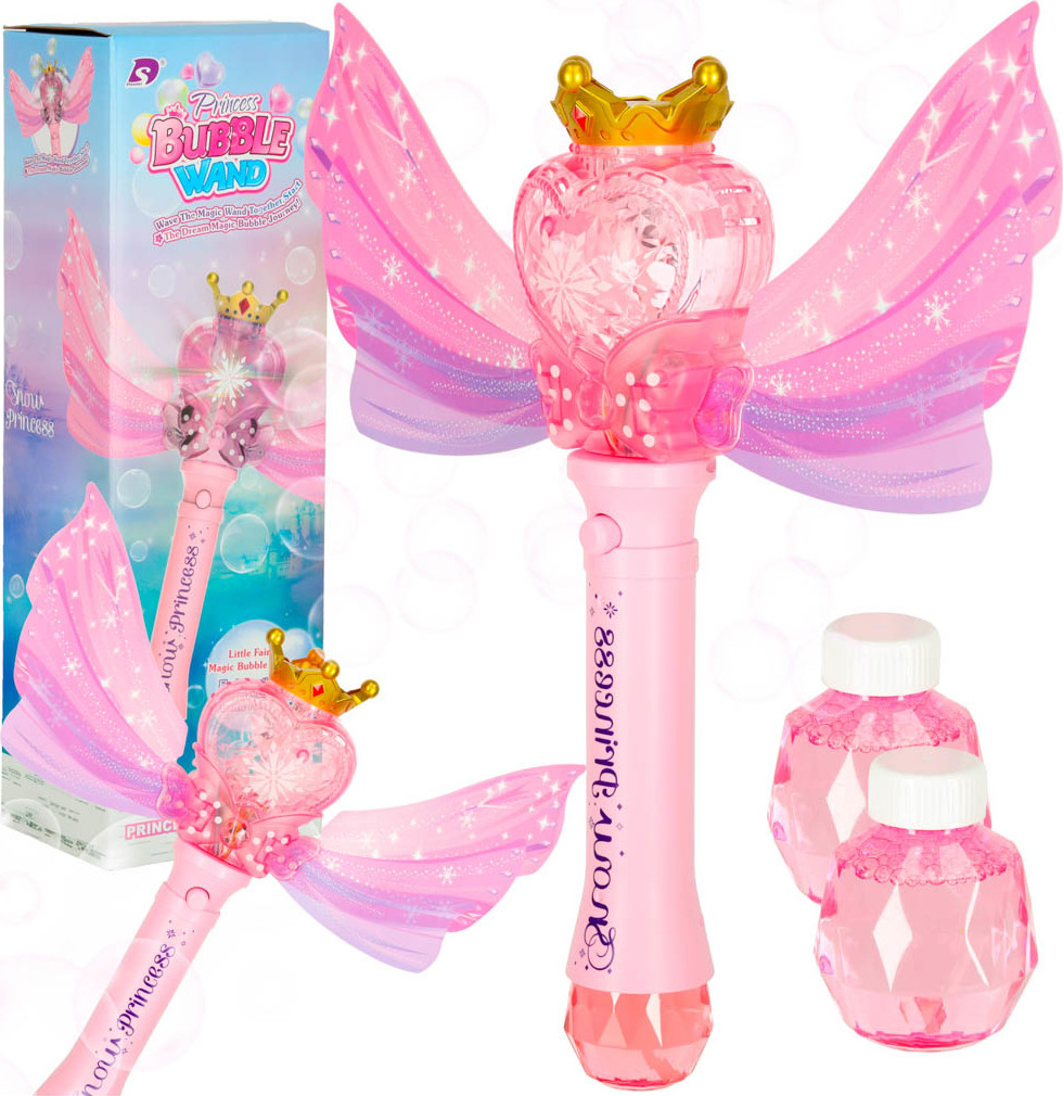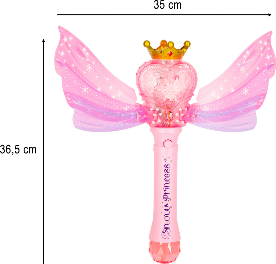 Automatický bublinkovač v podobě hůlky s křídly promění každou hru v pohádkové dobrodružství. Vaše dítě si tuto hůlku zamiluje. Je to fantastická hračka, která nejenže vypadá úžasně, ale především dětem přináší spoustu radosti a pocit, že si vytvoří vlastní barevný a kouzelný svět. Stovky kouzelných bublin jsou doprovázeny rytmickou melodií a barevnými světly, díky čemuž je zábava ještě příjemnější. Díky svému robustnímu mechanismu tento automatický bublinkovač bez námahy vytváří barevné bubliny. Tento unikátní bublinkovač je ideální pro hraní doma, na zahradě nebo na narozeninových oslavách.