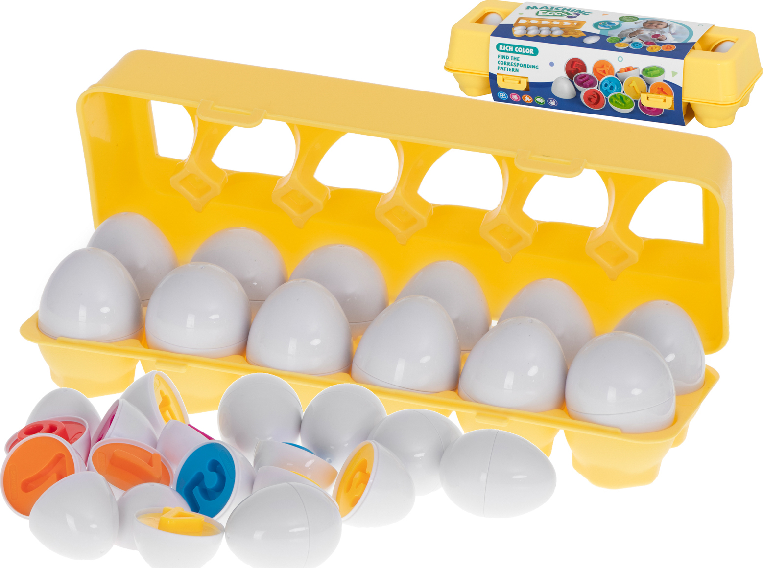 Toto vzdělávací puzzle s 12 vejci je skvělý způsob, jak rozvíjet logické myšlení, pozorovací schopnosti a učit se barvy! Sada se skládá z 12 vajíček, která lze rozdělit na poloviny. Děti je musí spojit tak, aby tvar a barva vnitřku dokonale odpovídaly – pouze tak budou správně sestavena. Puzzle podporuje rozvoj manuální zručnosti, koordinace ruka-oko a kreativity a zároveň umožňuje učení hrou.