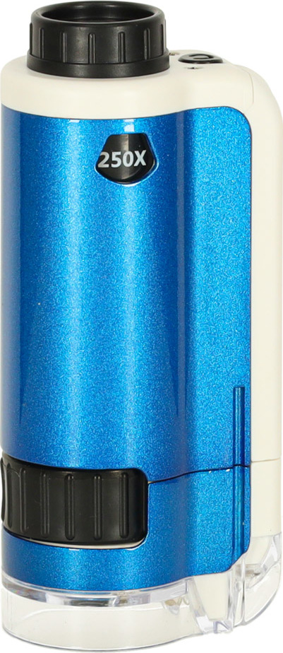 - dva stupně zvětšení - zvětšení 100x a 250x umožňuje detailní pozorování různých věcí: listů, vláken nebo krystalů soli.