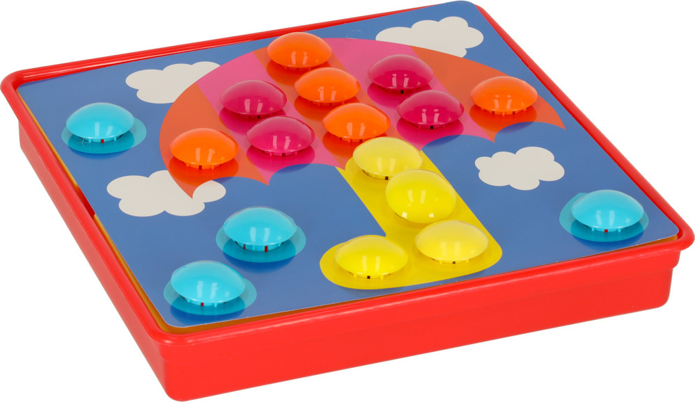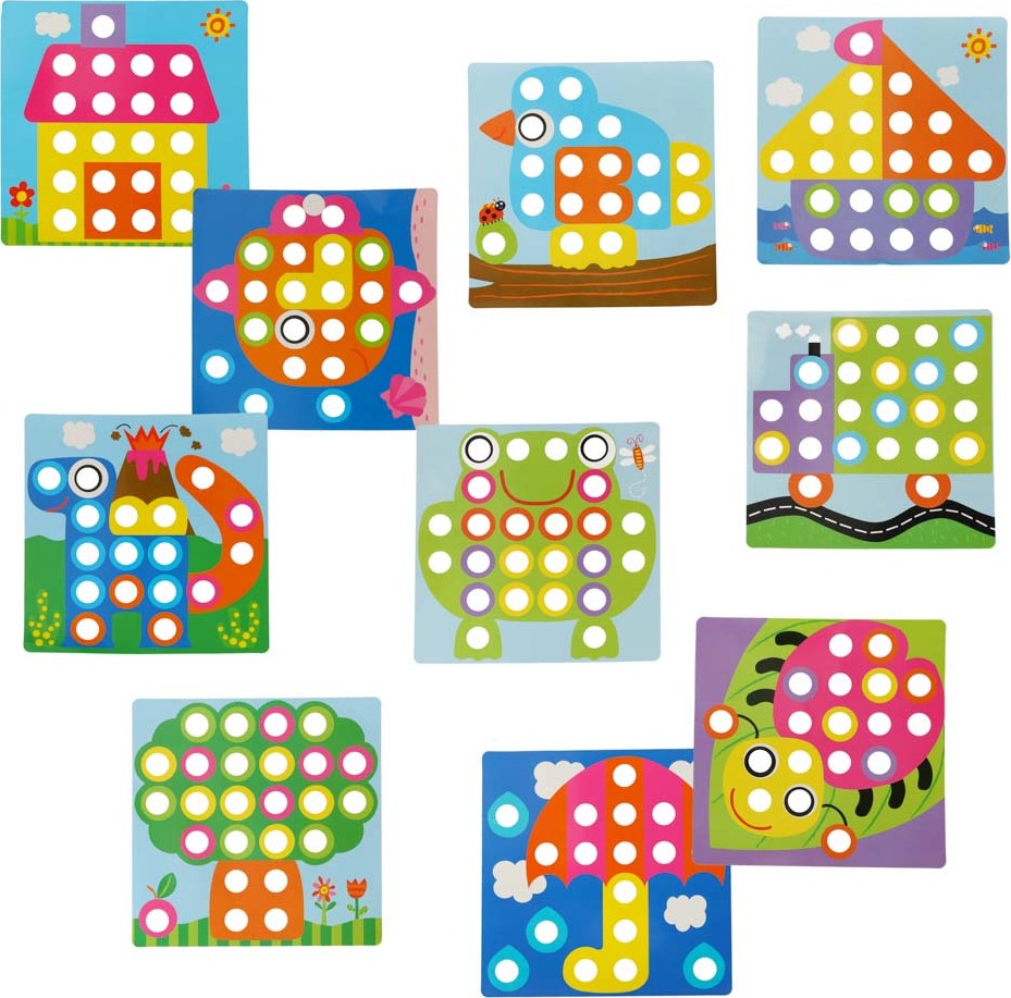 Fantastické vzdělávací puzzle, které pomáhá učit názvy barev, počítání a rozpoznávání tvarů. Zábava spočívá v tom, že do otvorů na obrázku zasunete knoflíky správné barvy. Hra s knoflíkovou mozaikou je úžasné dobrodružství. Možnost vytvořit jedinečné umělecké dílo vaše dítě velmi uspokojí a bude se cítit opravdu hrdé na výsledek své práce. Sada vám jistě poskytne spoustu zábavy a potěšení. Nechte své dítě cítit se jako skutečný umělec.