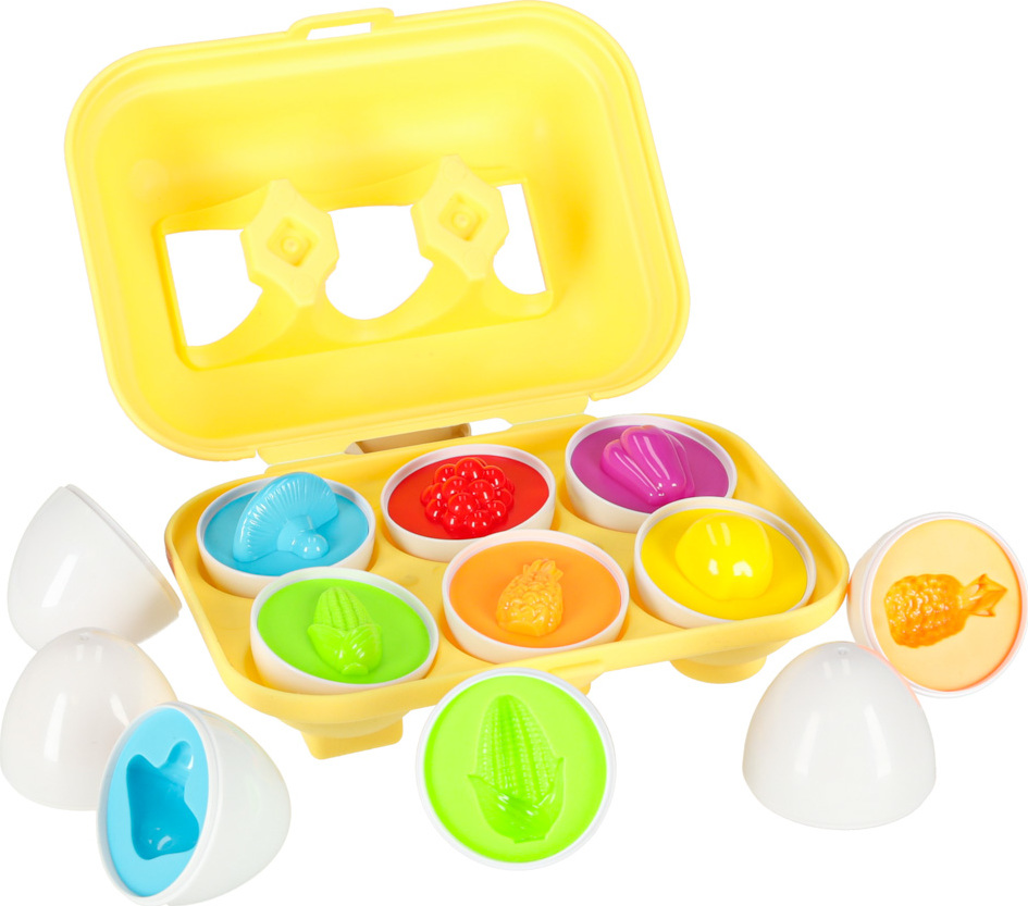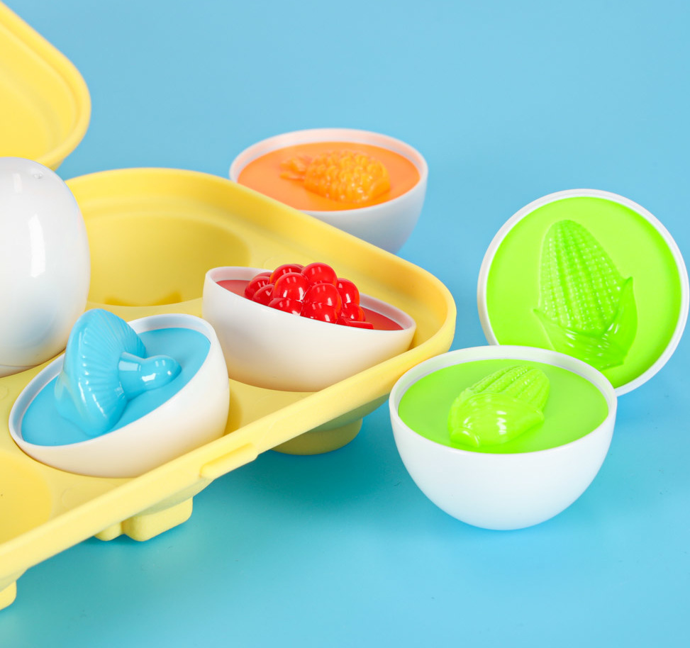 Tohle nejsou obyčejná vajíčka. Je to třídička, skládačka, škola logiky a barev v jedné hračce. Tato inovativní vzdělávací hračka je dokonalým způsobem, jak se učit hrou od útlého věku. Dítě si procvičuje rozpoznávání barev a přiřazování tvarů a zároveň rozvíjí soustředění alogické myšlení. Barevná vajíčka se skrytými vzory ovoce podporují učení tvarů a barev formou zábavné skládačky. Hračka stimuluje rozvoj kognitivních dovedností a podporuje samostatnost. Je vynikající volbou pro rodiče, kteří chtějí své děti seznámit s výukou rozpoznávání různých tvarů přirozeným a zajímavým způsobem.