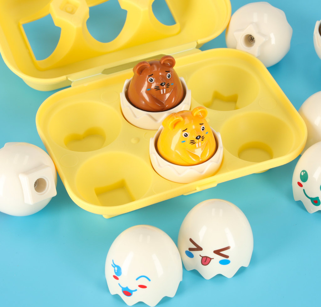 Každé vajíčko se skládá ze dvou částí, které je třeba spojit - přiřadit tvary, barvy a vzory na dně. Tímto způsobem si děťátko rozvíjí logické myšlení, učí se rozlišovat barvy a tvary a pamatovat si uspořádání - skvělé cvičení paměti a soustředění.